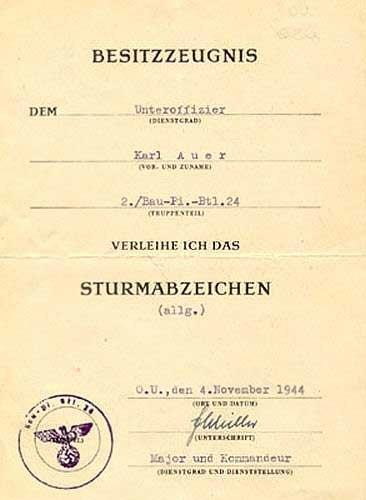 Общевойсковой знак «За атаку» (Allgemeines Sturmabzeichen) был Учрежден 1 января 1940 года.