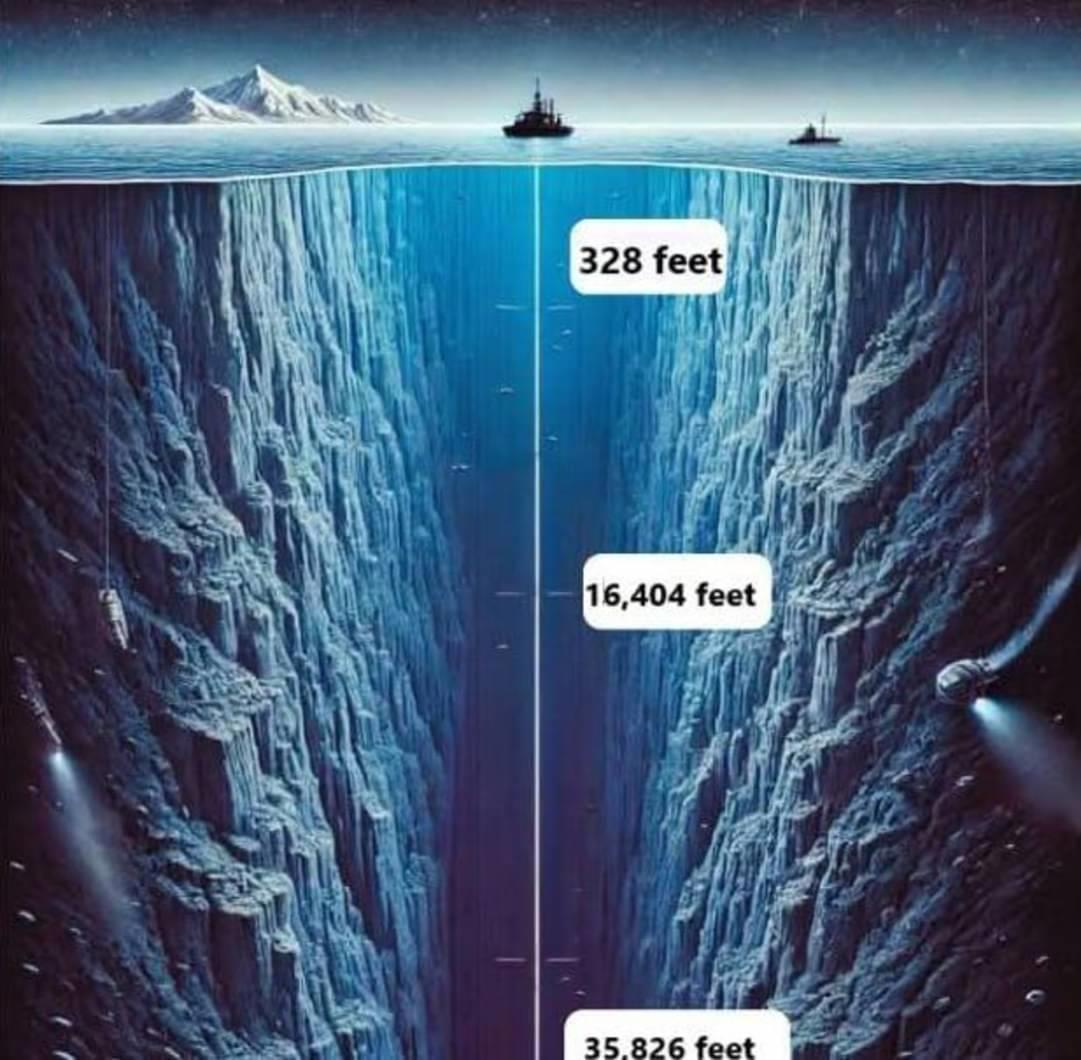 Они достигаются на глубине 4000 м (13 000 футов). Но это не все. Далее следует хадальная зона на глубине 6000 м (19 000 футов). Самой глубокой частью этой зоны является Марианская впадина, глубина которой достигает 10 935 м (35 876 футов), что превышает высоту горы Эверест.