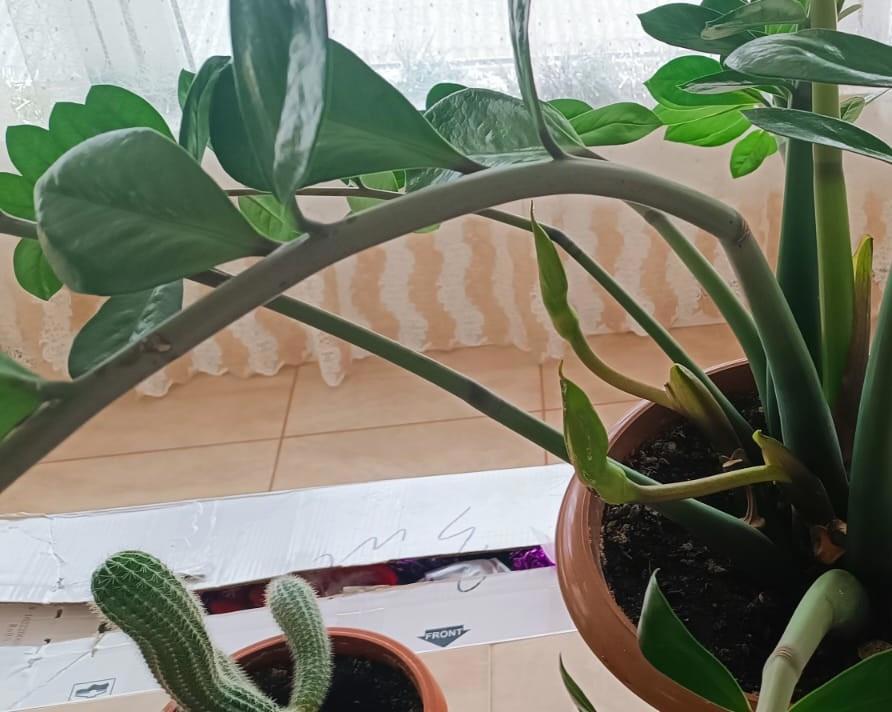 И вот прошло пять лет. Растение в течение каждого года пускало новые стебли. Они крепли и замиокулькас стоял себе раскинув ветки и казалось, что от него никаких новостей и не может быть. Будет расти вширь и ввысь)