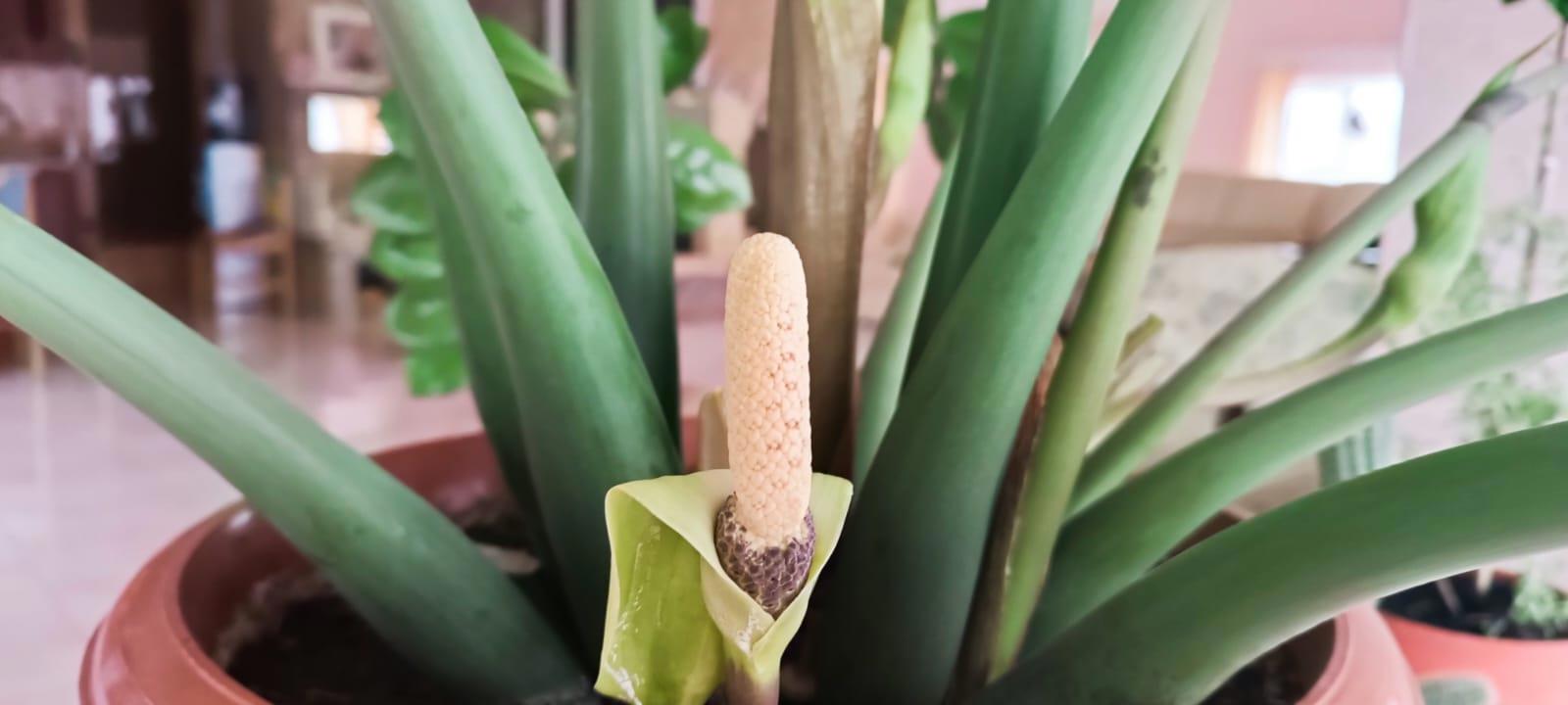 Кстати, это еще не цветок. Цветок должен быть белый, чем-то похожий на каллу. Так что главная радость еще впереди. Но нам уже в любом случае приятно.