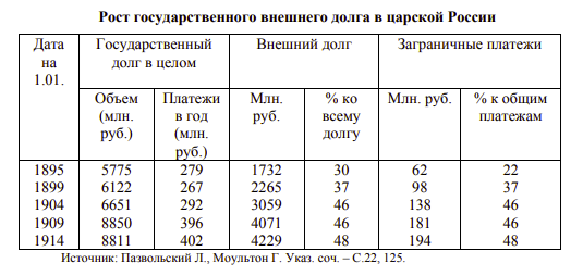 Как видно по этой таблице хотя гос долг с 1895 года по 1899 год вырос, но платежи упали с 279 мил. до 267 мил. Россия нашла деньги на постройку новых ЖД и выкуп убыточных у частников, но при этом ежегодно платить стала меньше. Как это может быть?