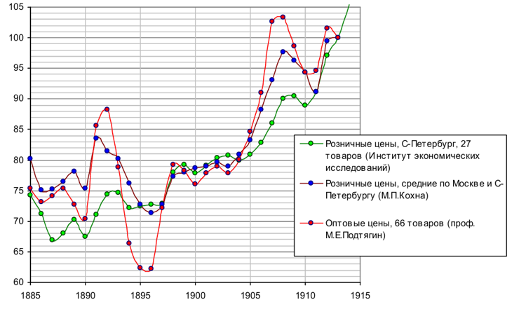 Во время Витте несмотря на колебания цены к 1905 года стабилизировались. А во время РЯВ пошла инфляция, включили печатный станок, притом тайно.