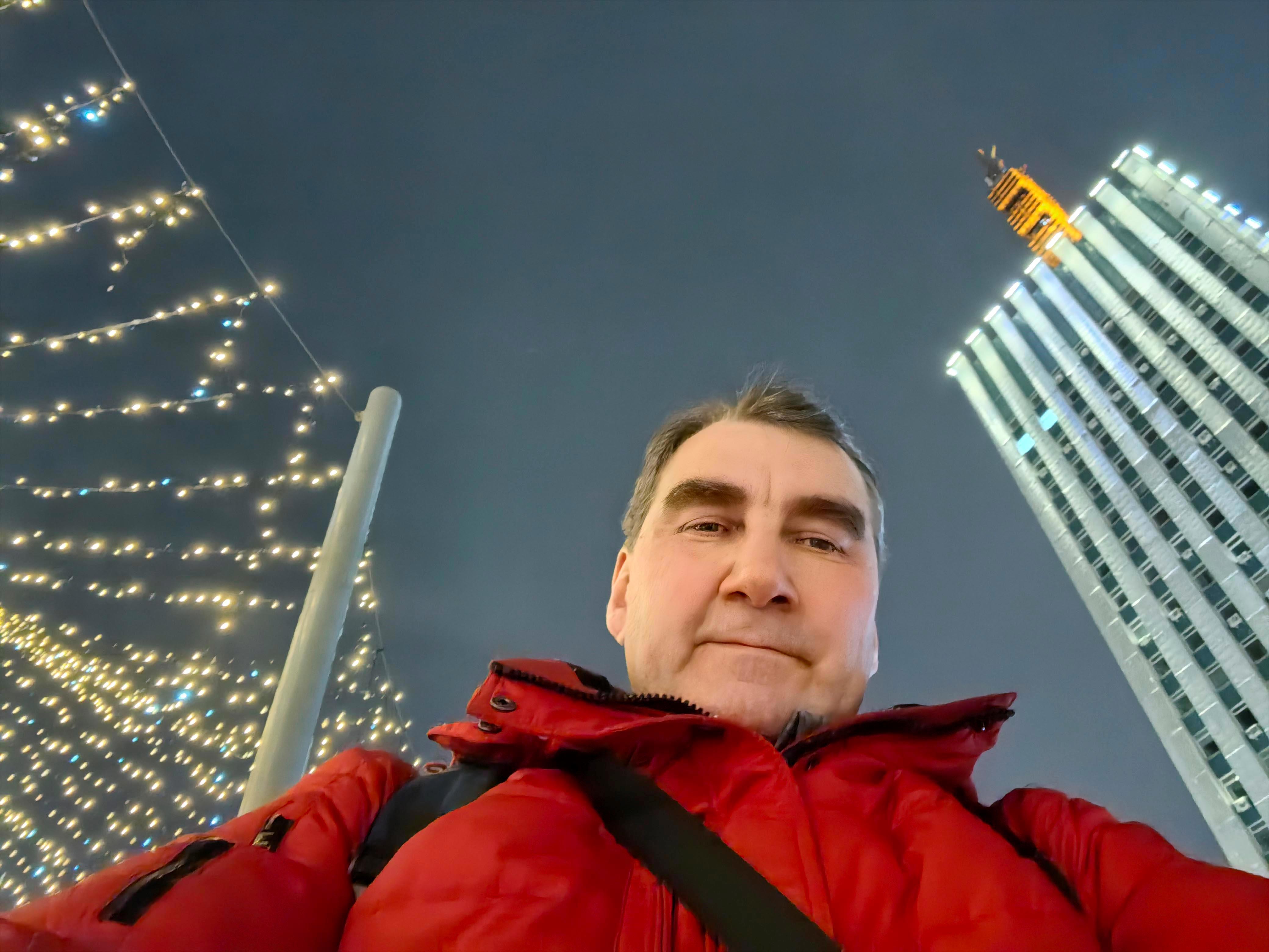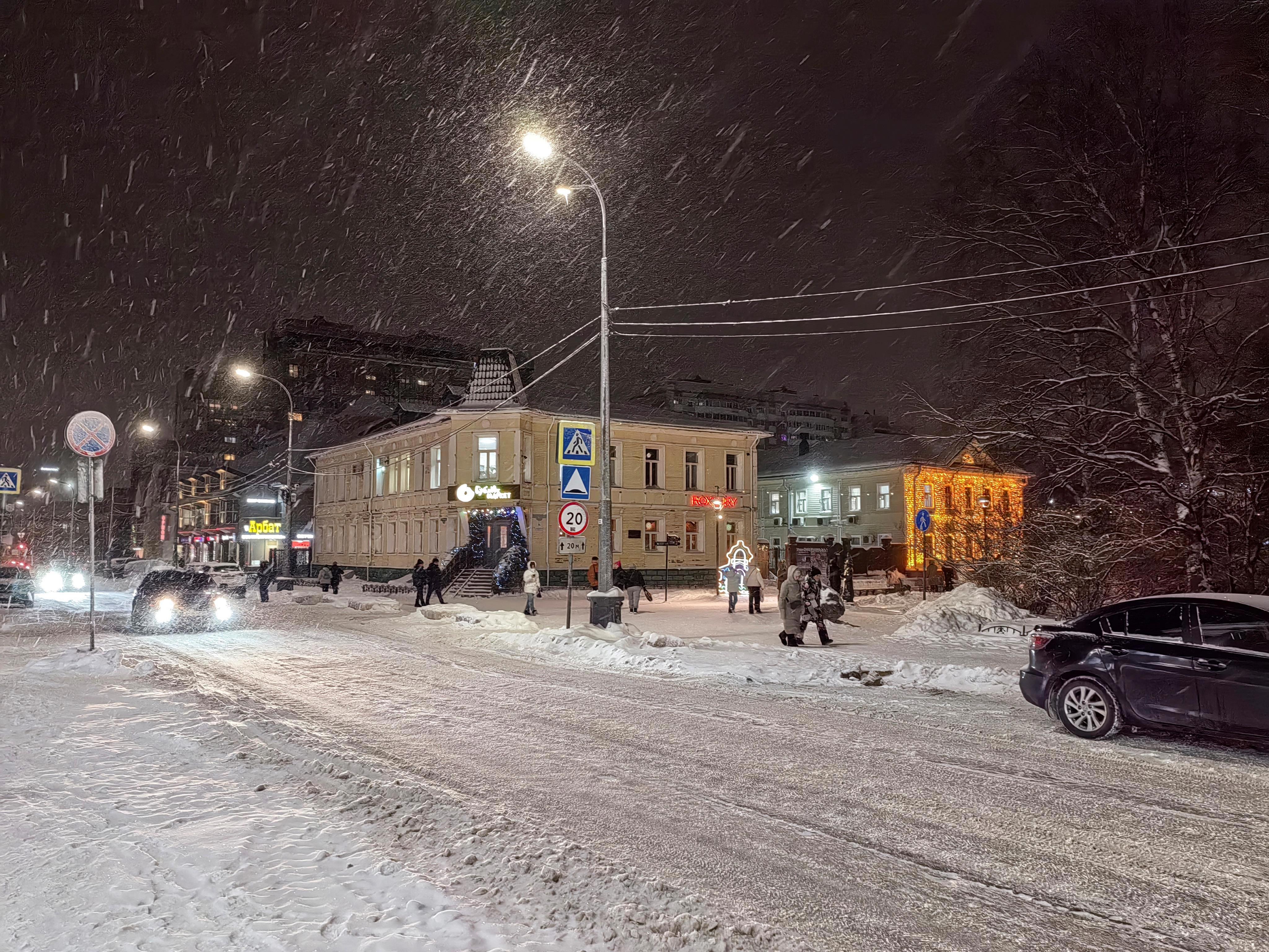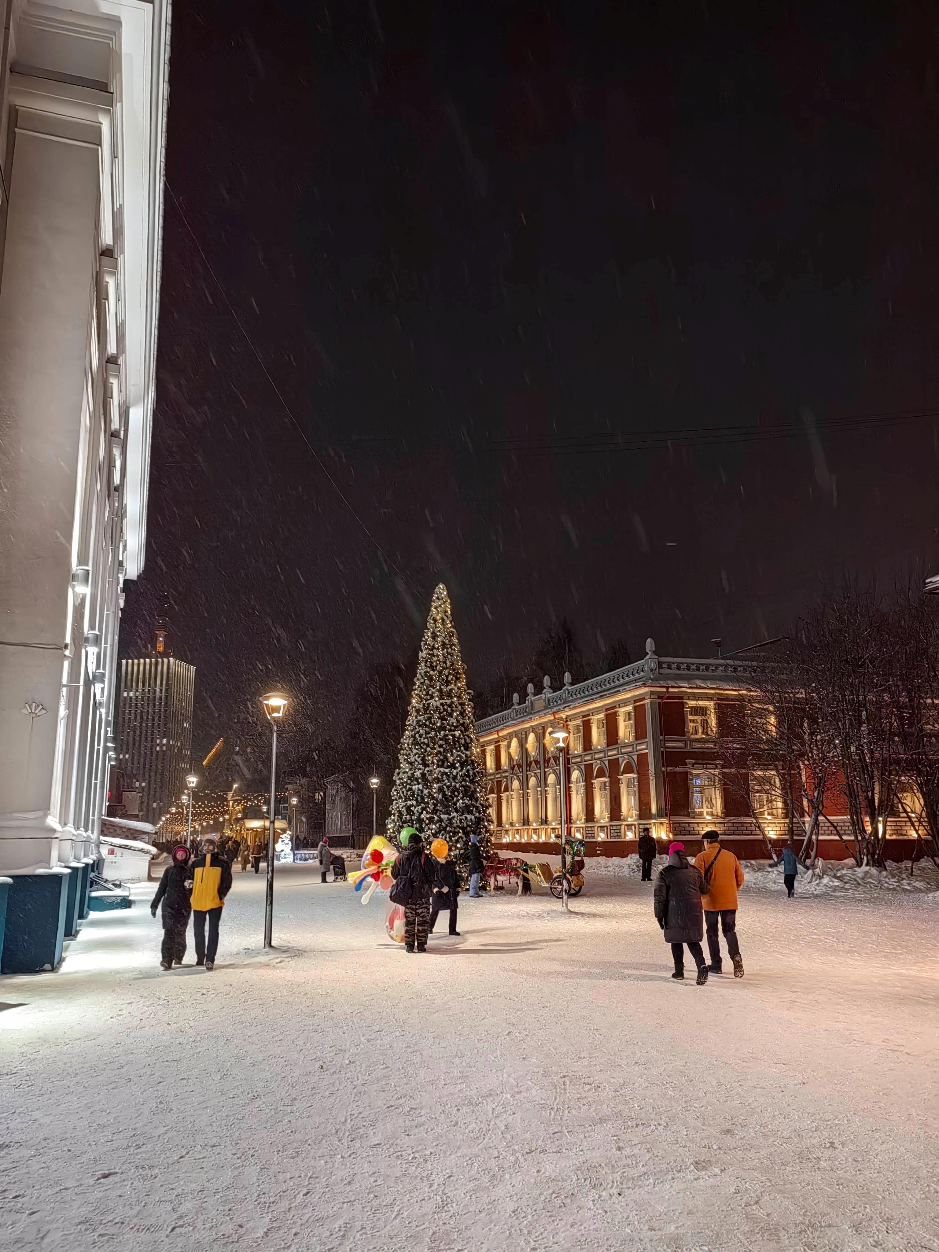 Первые впечатления по прибытии были приятными – много снега вокруг; заснеженный, но действующий порт с кораблями, в темноте похожими на космические, поскольку обвешены огоньками, как новогодняя елка; новогоднее настроение, шикарная елка в центре и люди на конях вокруг нее.