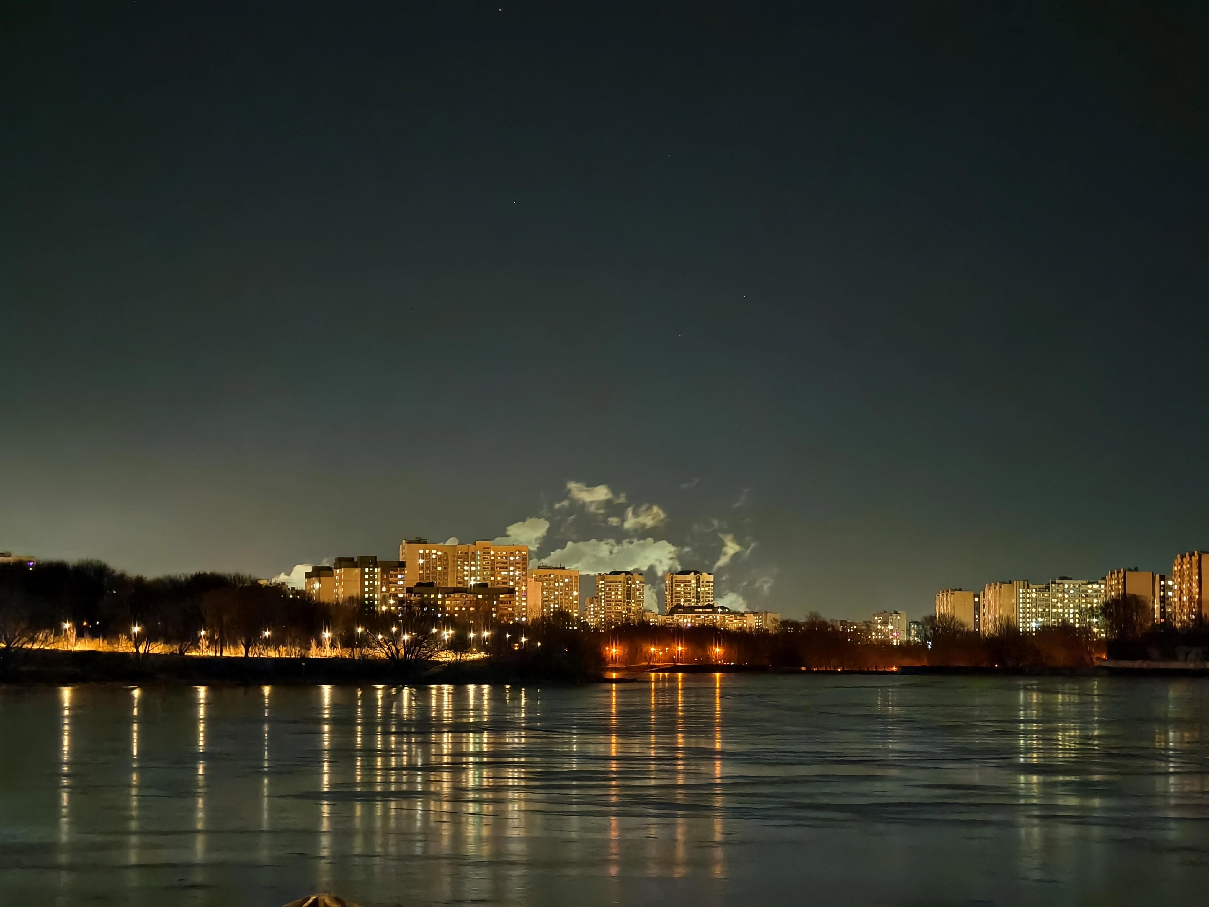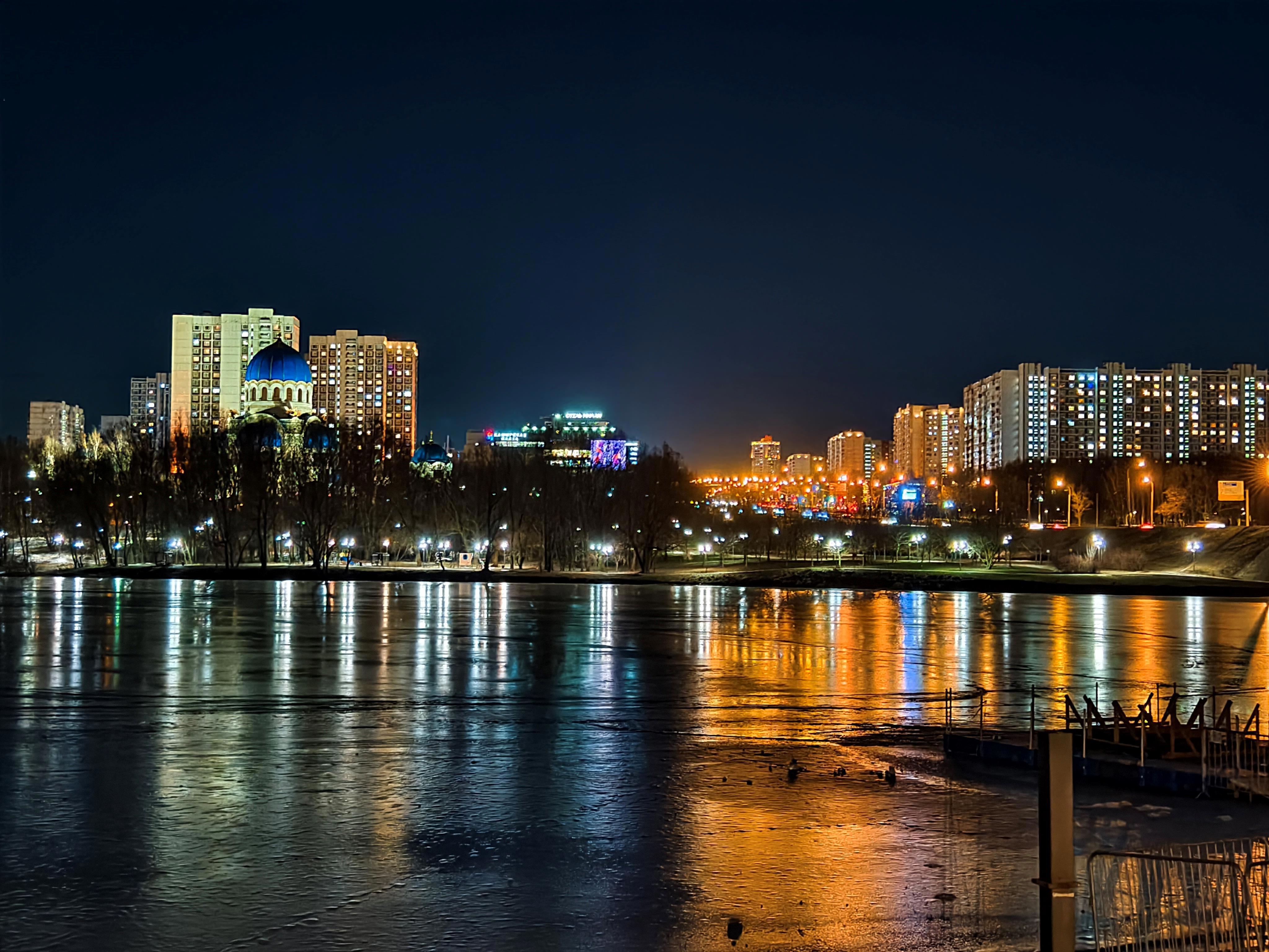 Гулял я вечером в парке у пруда. На той стороне по ходу движения за прудом есть дома.