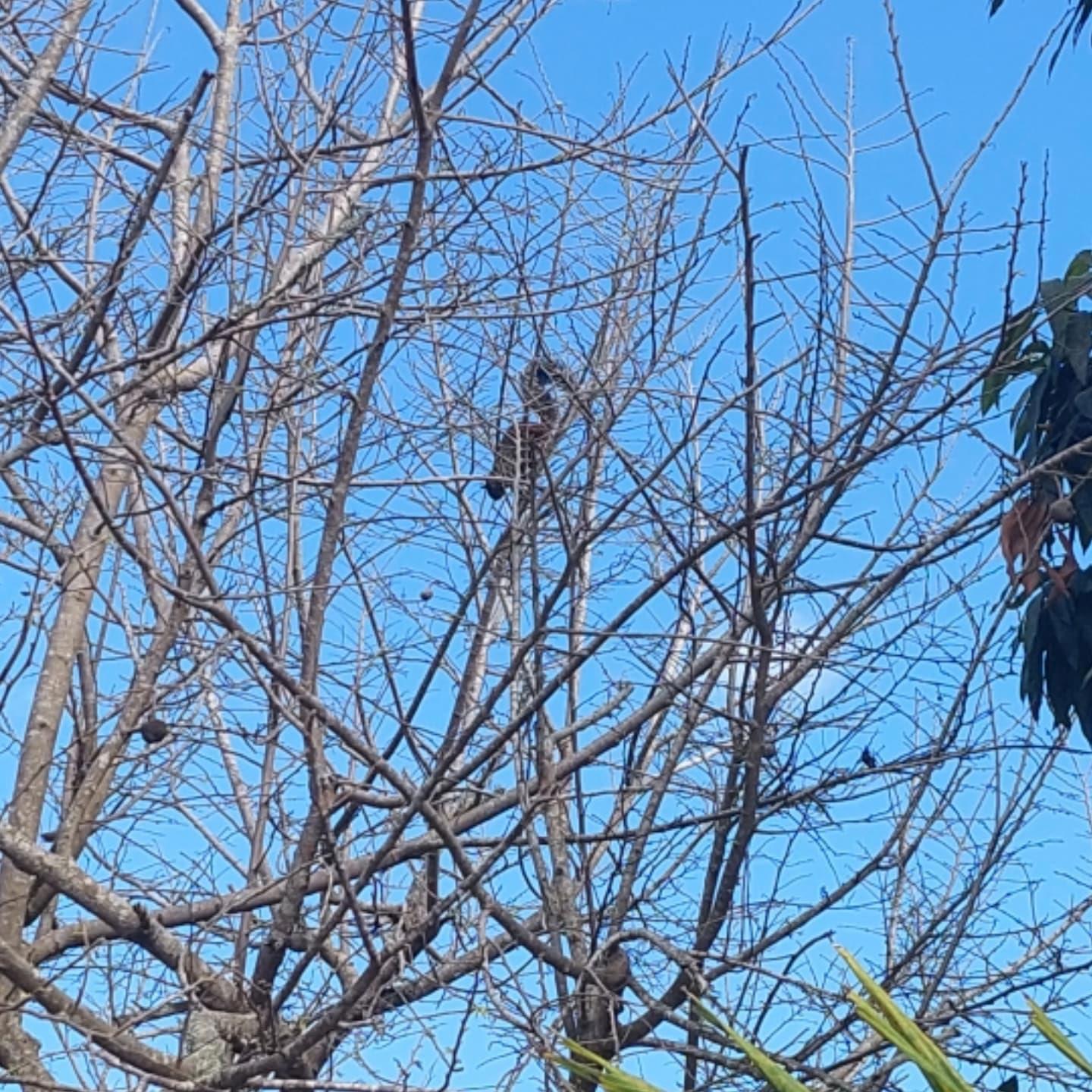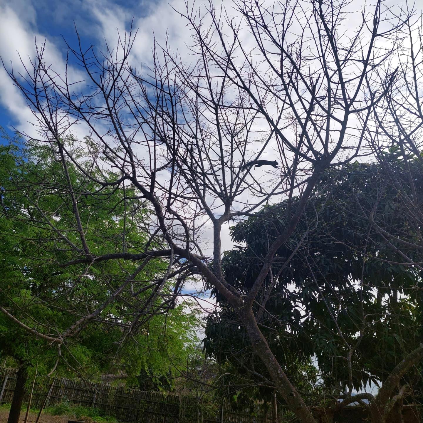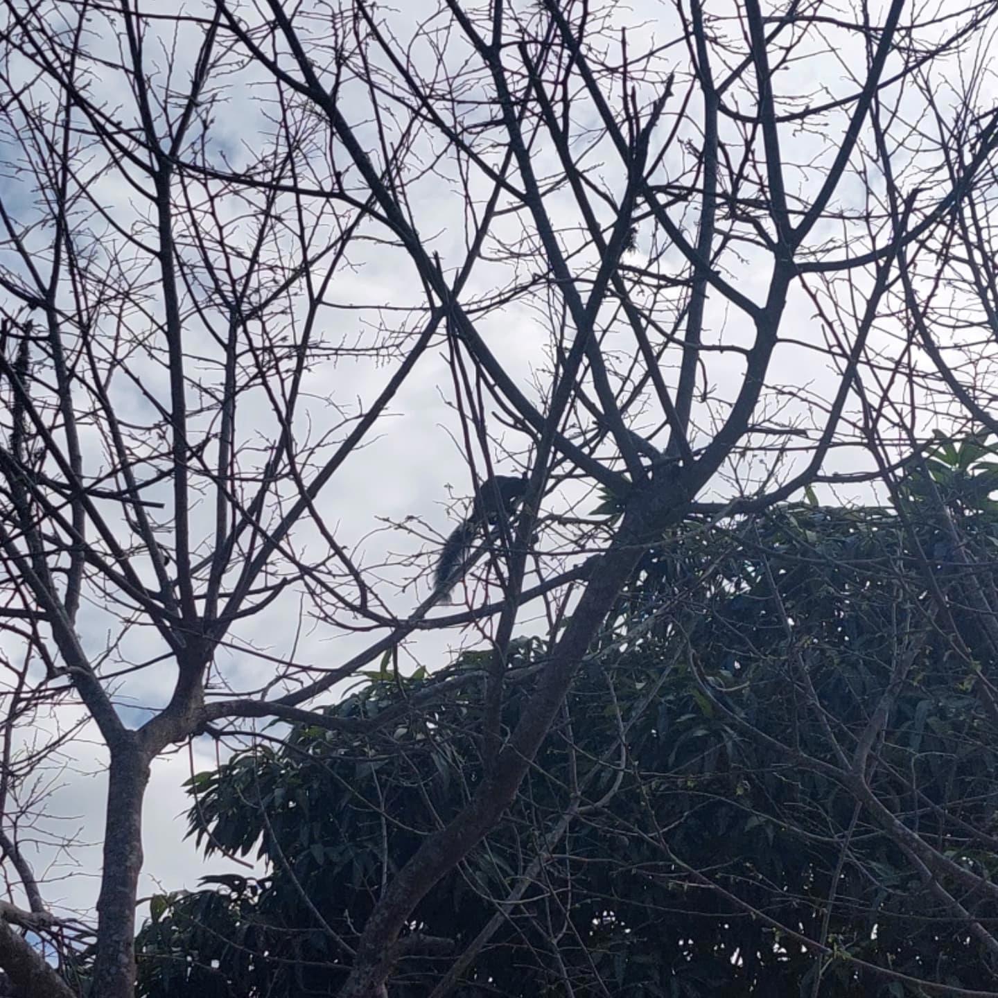 В общем Мася решила, что это такая крыса большая с пушистым хвостом и загнала зверька на дерево. Зверек жрал упавшее манго, был сильно раздосадован, о чем сообшал громким у-уу-каньем.