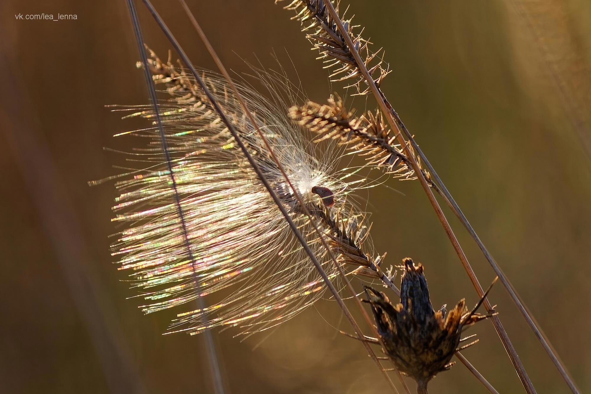 Заячий ячмень, он же мышиный - рыжий, за ним - сухие стебли сурепки. Этот дикий ячмень - интересная травка. Невероятно фотогеничен во все свои времена, от зеленых сочных ковров по весне до сушеных колосьев с длиннющими, очень колючими остями. И при этом ужасно приставуч, кто ходил через заросли созревшего заячьего ячменя, а потом полчаса выдирал из одежды и носков колючие ости (устюки, так у нас их называют) прекрасно понимает, о чем я.
