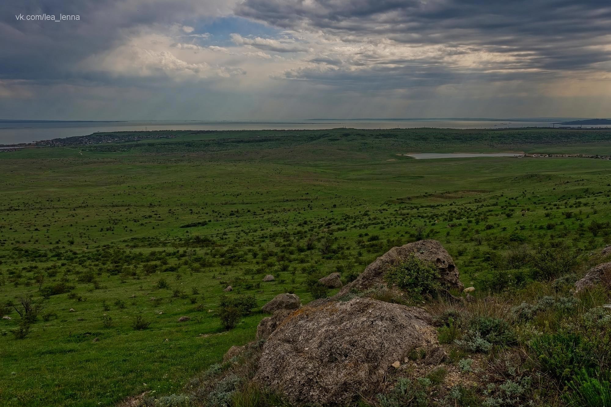 Вид с горы Хрони - самой высокой точки северо-восточной части Керченского полуострова. День был совсем пасмурный, но как раз из-за этого фотографии вышли с настроением.