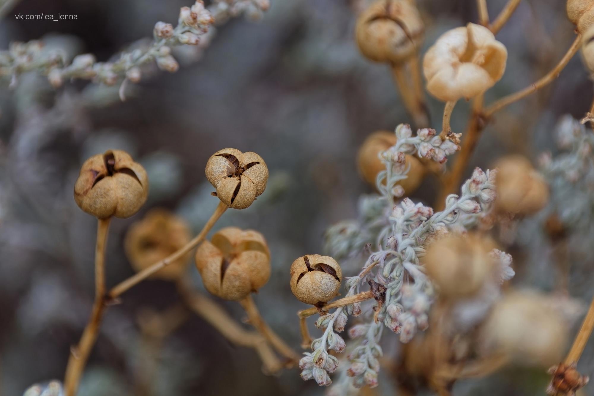 Сухие плоды гармалы и веточки полыни, да, в пасмурный день.
