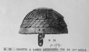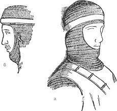 К XVI в., кольчужный капюшон вытесняется шлемами дополненными пластинчатыми воротниками.
