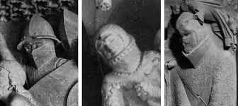 На изобразительных источниках первой четверти XIV в., к примеру на таких как надгробие Рамона Фолька X и барельеф собора в Памплоне, можно видеть латный ворот, у которого передняя часть имеет клиновидную форму и напоминает нос корабля. Иногда, эта пластина имела значительную высоту закрывая голову до уровня глаз. Конструктивно данная защита не отличалась от описанной выше.