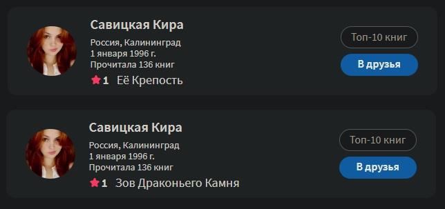 Кстати, примечательно, что эта парочка ставит единички и другим авторам синхронно. Так что версия, что им реально просто не нравится вместе, тоже имеет место быть. Просто за Крепость по-авторски обидно немного.