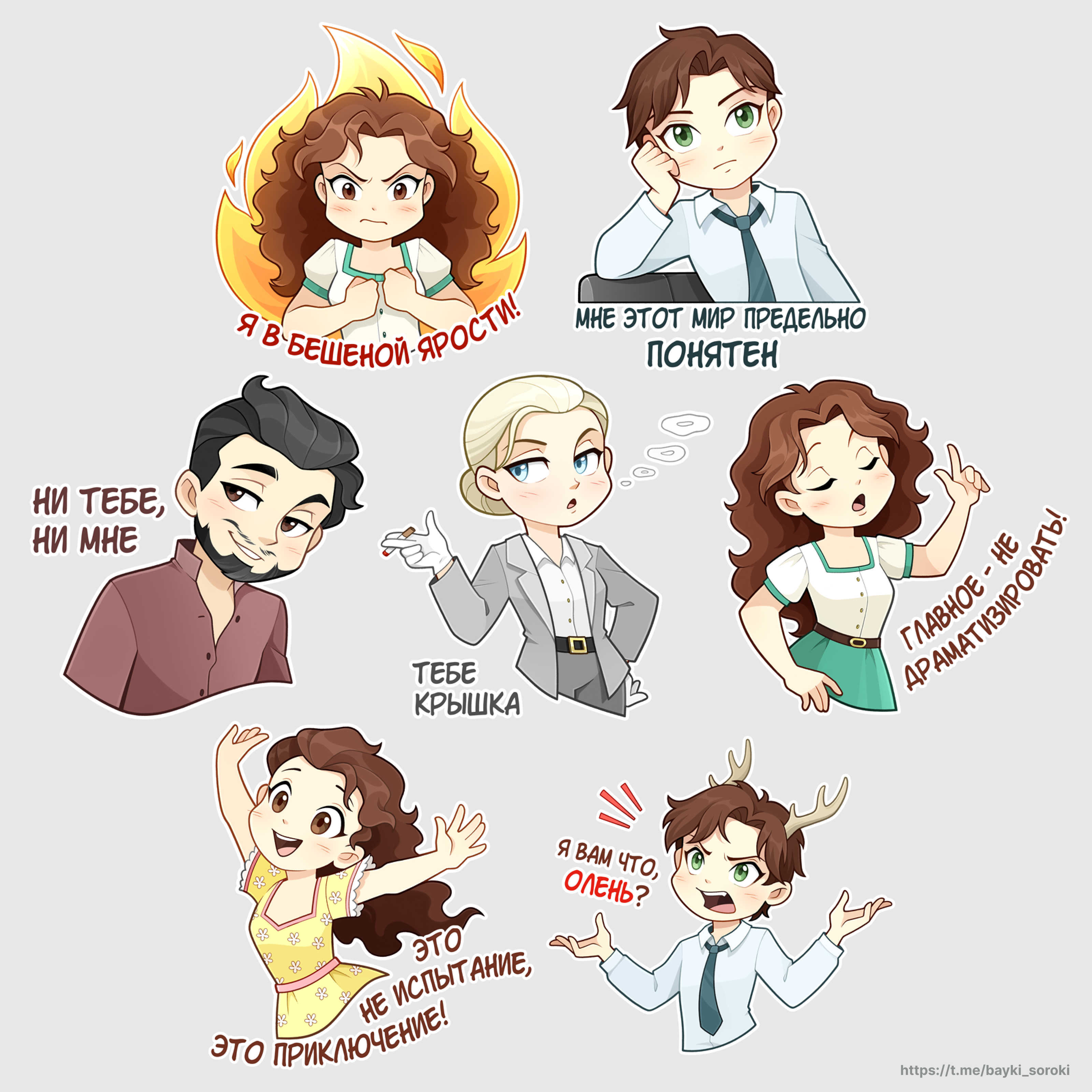 Автор: Настасья СорокинаМоя обожаемая Ира Fealosse нарисовала чиби-стикеры по "Живым нитям", и я довольная как стая слонов. Пользы в этом факте целая куча)