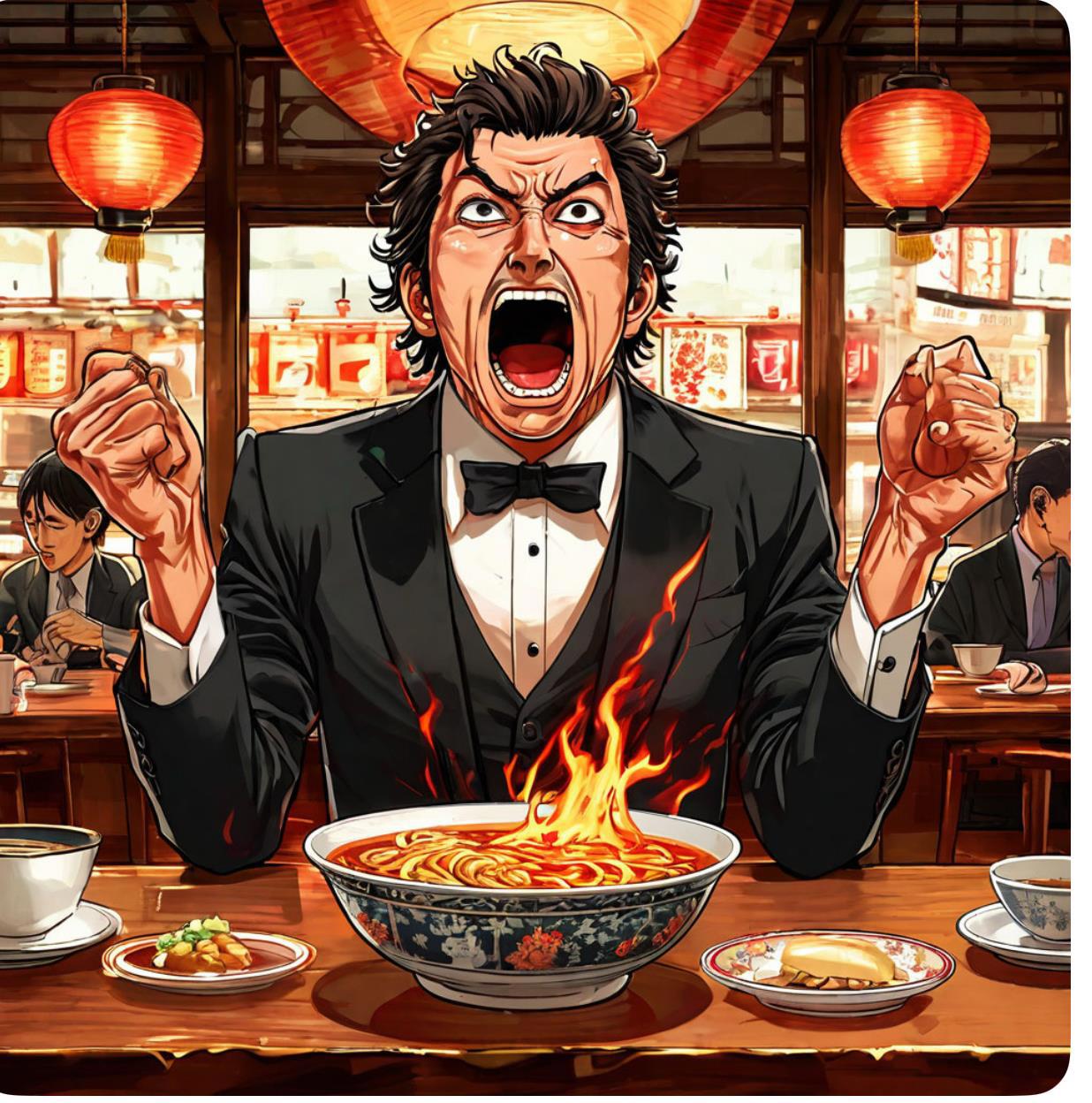 Хиросэ удивился, но всё-таки осторожно макнул ложку в миску с супом и зачерпнул капельку бульона. Опасливо он отправил ложку в свой рот, и тут же глаза его практически выкатились из орбит.