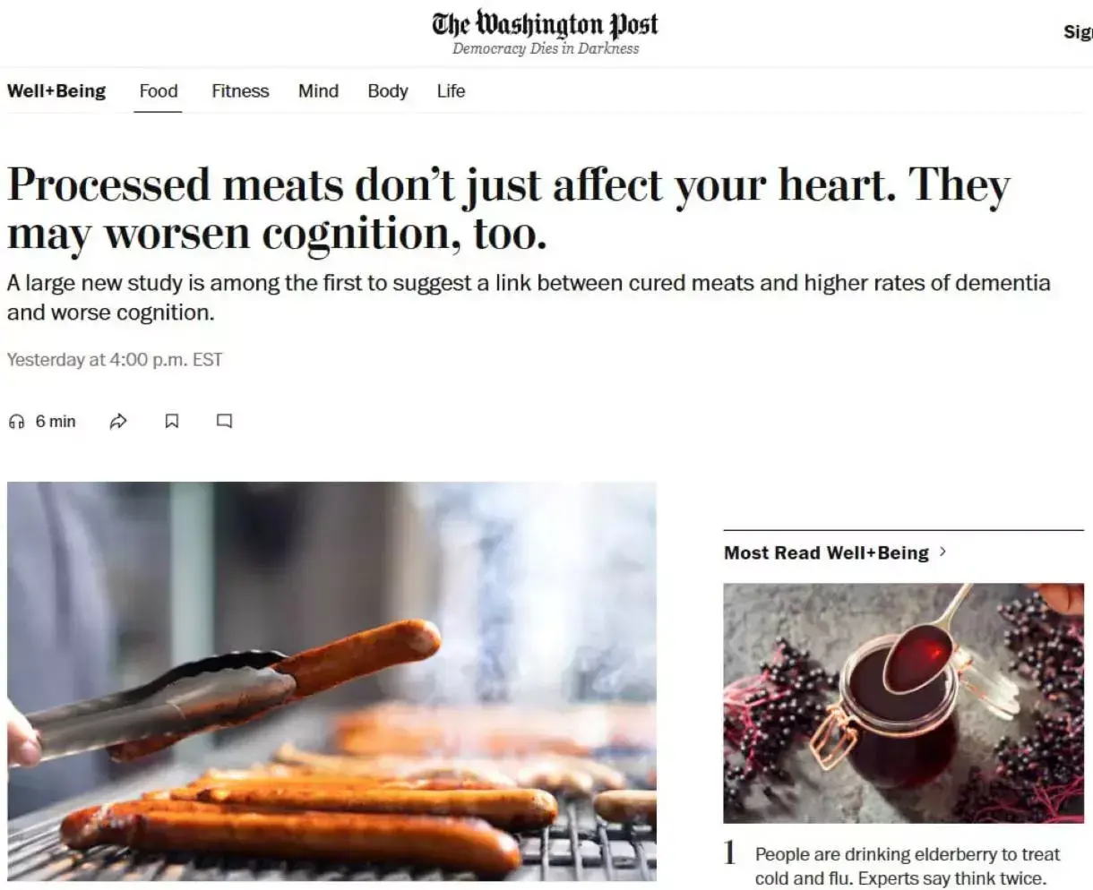 Причина может быть у неумеренном употреблении колбасы и сосисок! Колбасы, сосиски и бекон повышают риск деменции на 13-14%, - WaPo со ссылкой на исследование! По мнению учёных, всего 21 грамм переработанного мяса в день могут значительно увеличить риск ухудшения памяти и других когнитивных функций!