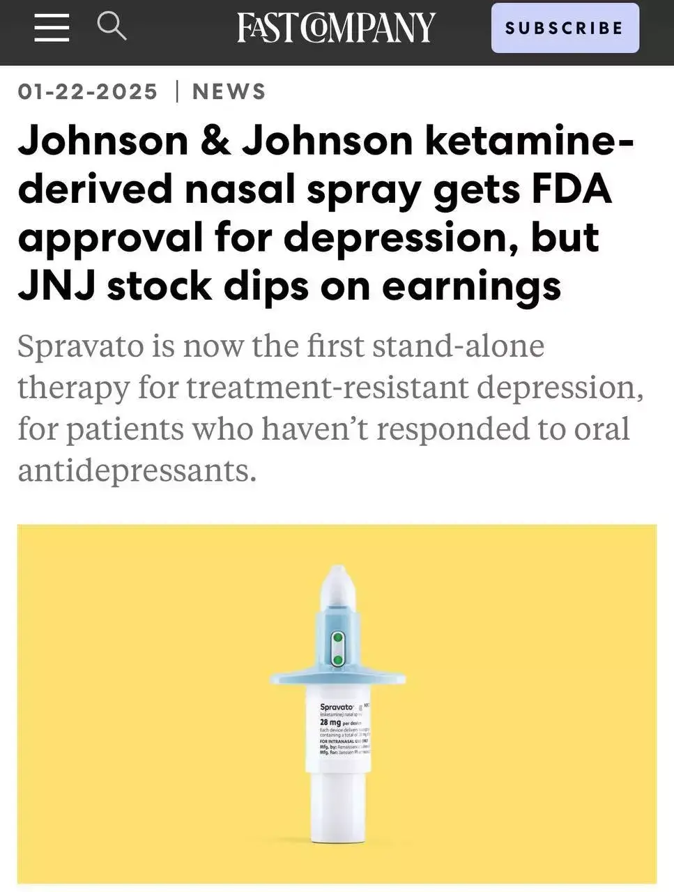 Начнём с хороших новостей! В США одобрили первый в мире спрей от депрессии - препарат с производным кетамина впрыскивается в нос, заменяет антидепрессанты и поднимает настроение уже через 24 часа!