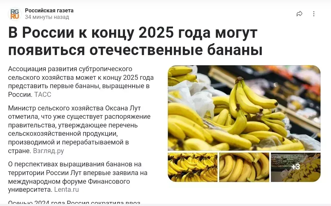 Хорошо, что я купил колбасу и сосиски до того, как прочитал эту новость! Теперь я буду их есть абсолютно спокойно, в отличие от тех, кто не успел их вовремя купить! Но вернёмся к хорошим новостям! Нет никаких противопоказаний для поедания бананов! Россия скоро сможет претендовать на гордое звание "Банановой республики"!