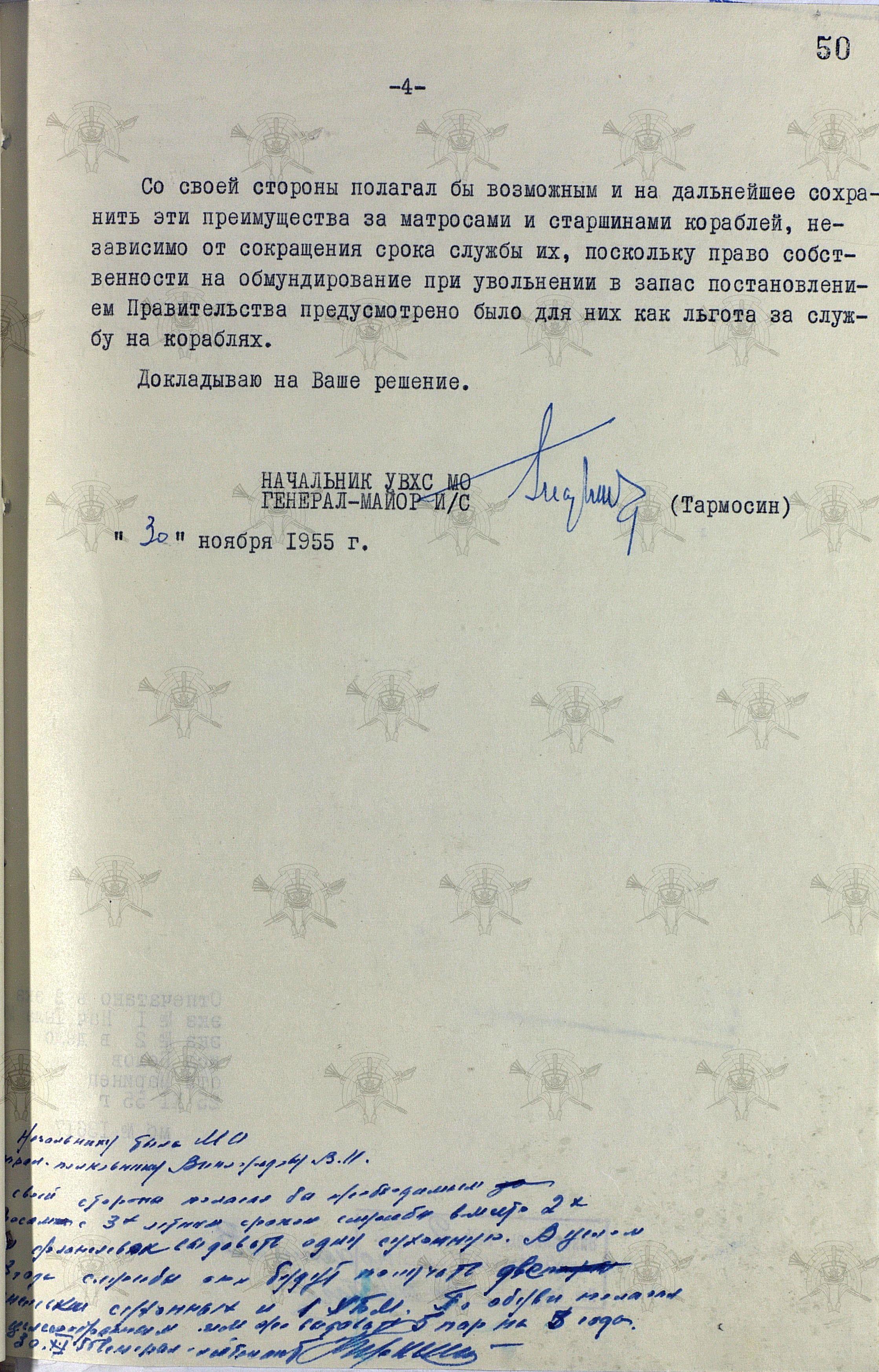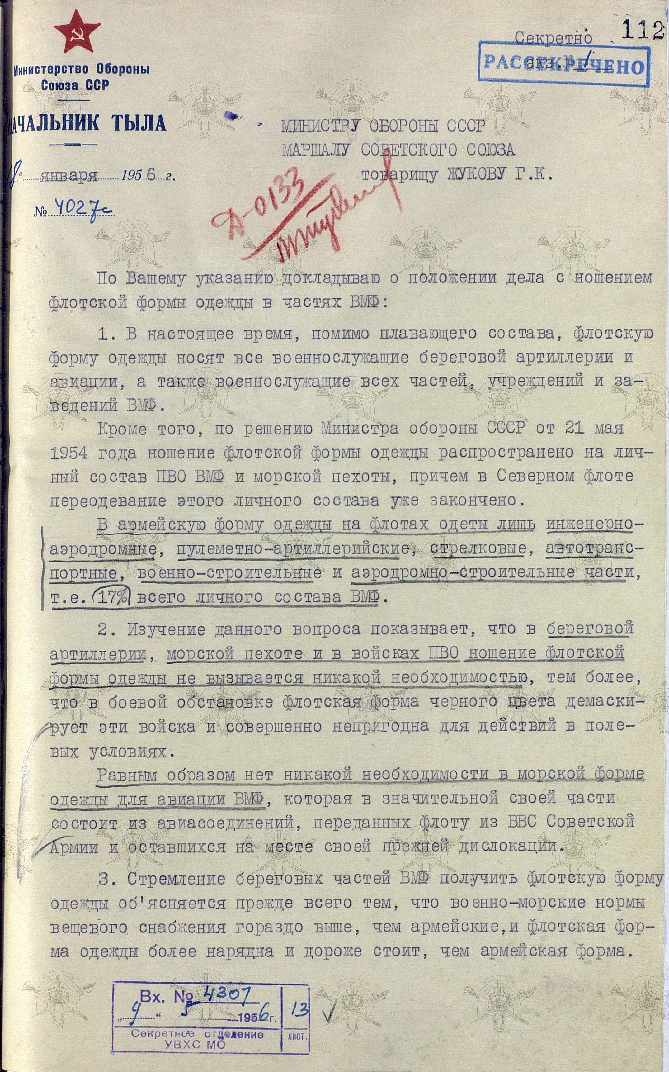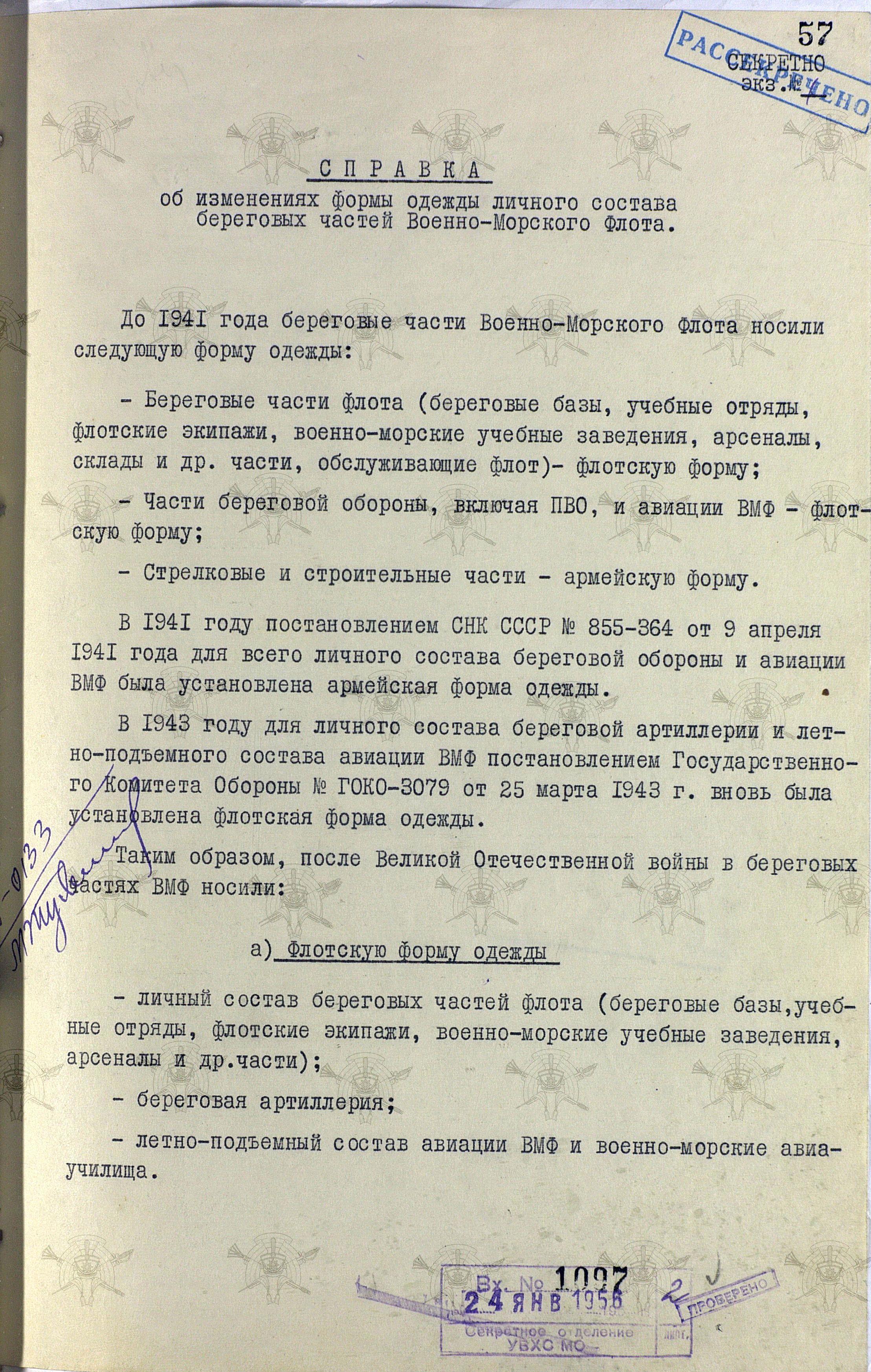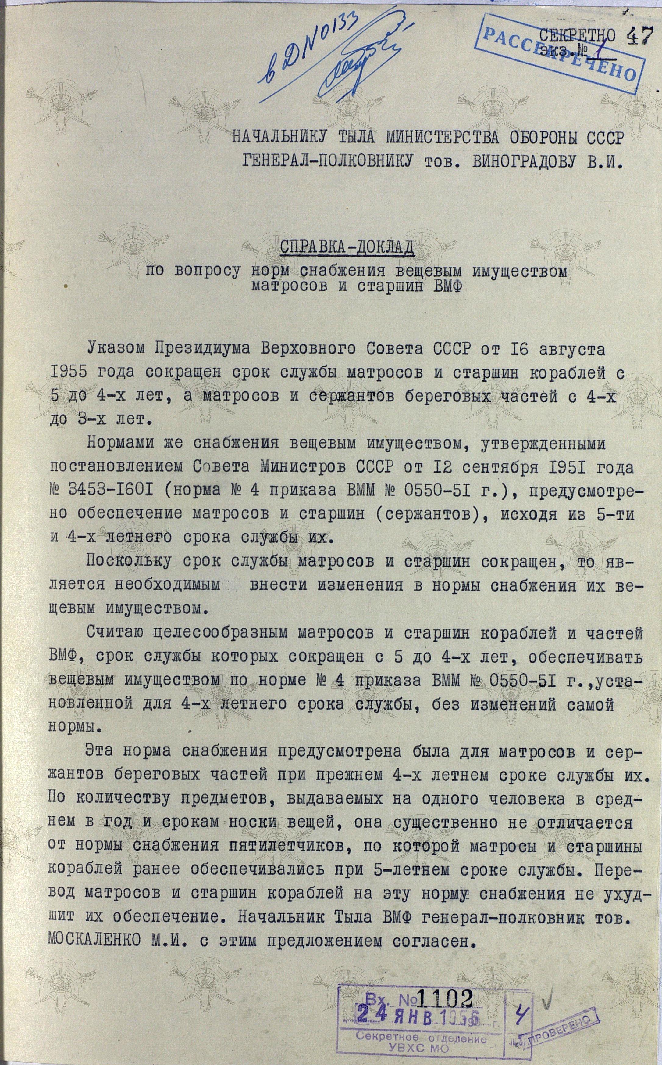 И начнём с исторической справки, подготовленной Управлением вещевого снабжения для доклада начальнику штаба Тыла МО СССР генерал-полковнику В.И. Виноградову и начальнику Тыла Министерства обороны СССР маршалу Советского Союза И.Х.Баграмяну.