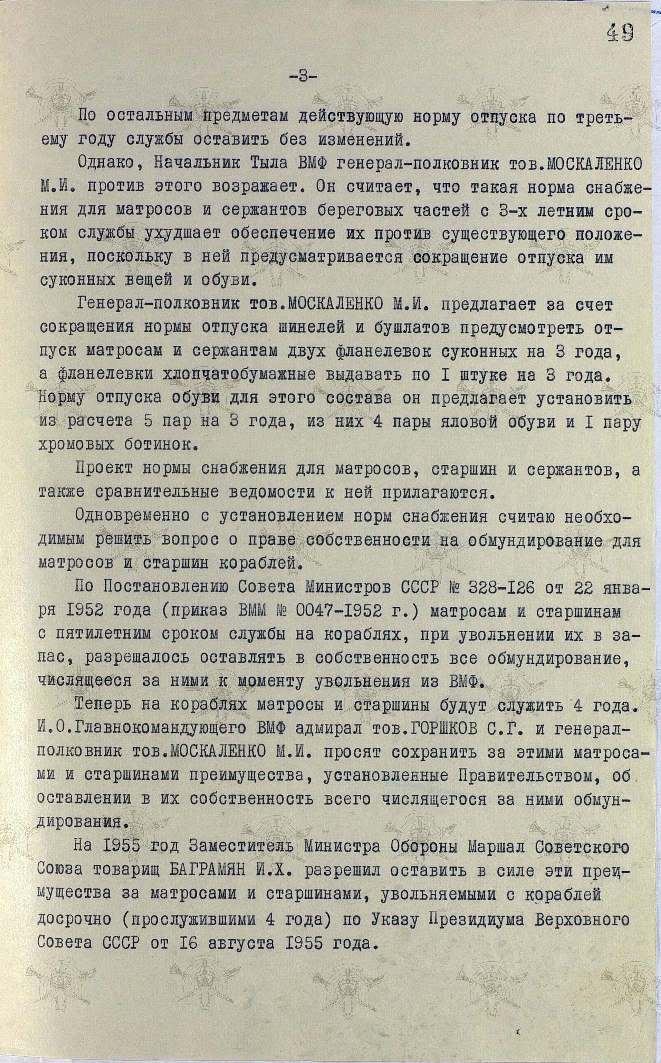 Возможно, правильнее было бы рассказывать об изменениях которые планировались и проходили и в Советской Армии и на Флоте, тем более, что они проходили одновременно и устанавливались единым приказом, но были у ВМФ и свои нюансы. В частности - разработка, испытание и принятие на снабжение формы для морской пехоты или, к примеру, для береговых войск. Но, к вопросам улучшения снабжения армии и флота мы ещё вернёмся, а сегодня поговорим о армейской форме, в которую массово переодевали флотских специалистов.