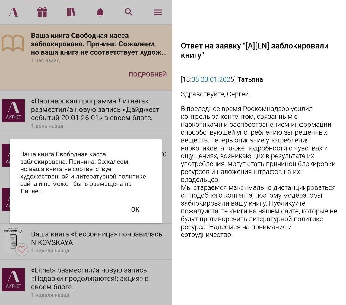 Опубликовал новый рассказ на АТ и на Литнет. И через шестнадцать часов мне прилетел бан. Модераторы Литнета отлично реагируют на жалобы.