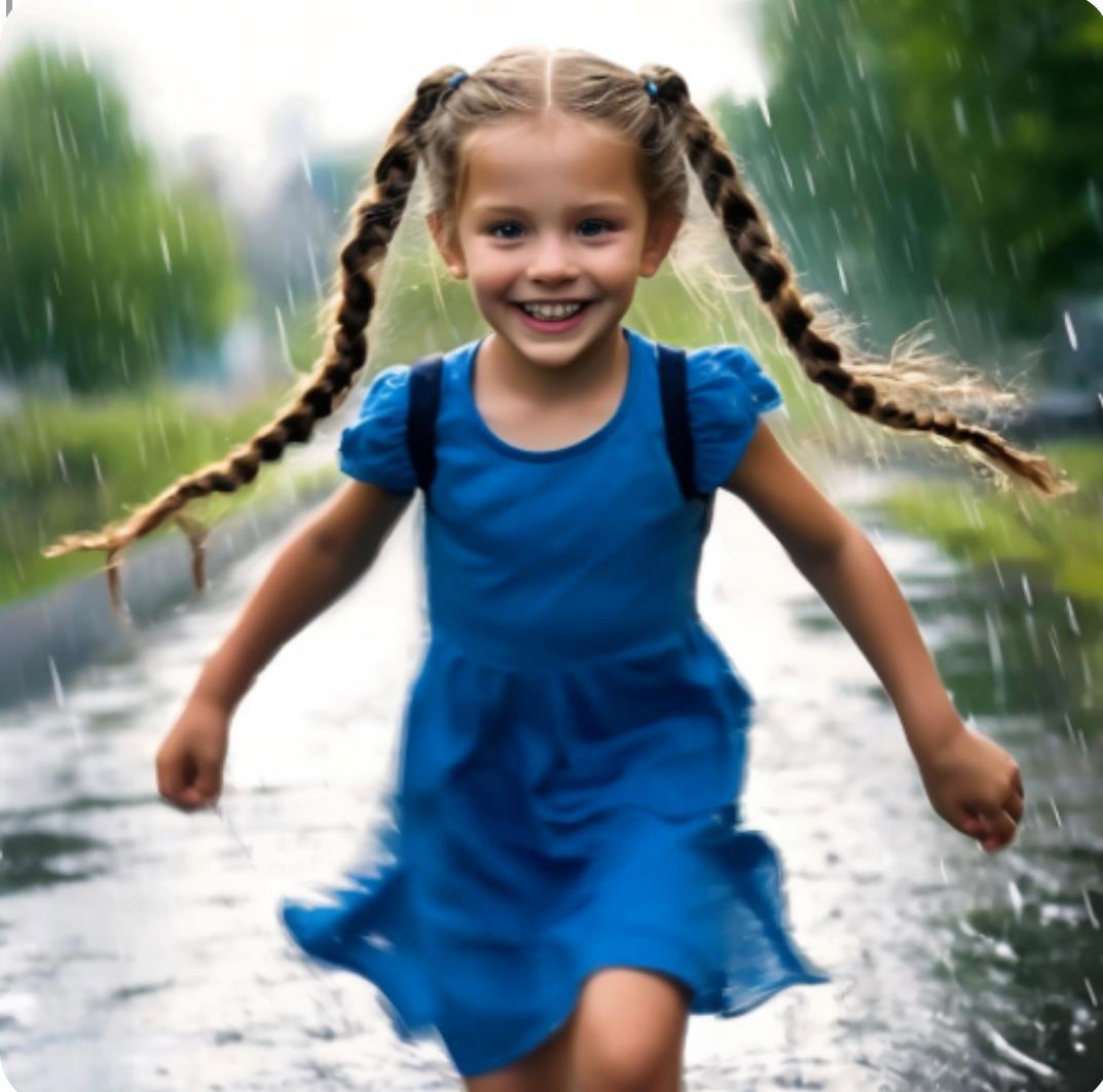 Я бегала и кружилась под крупными, но редкими каплями, начинающегося дождя. Грянул гром, серое полотно неба прошило золотыми нитями молний, подул ветер, но дождь не спешил усиливаться.