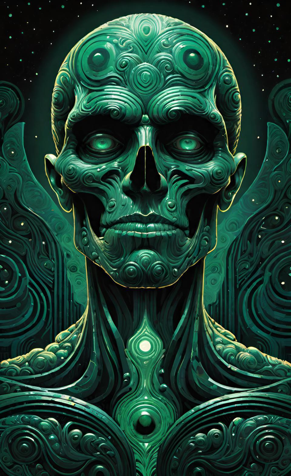 Автор: Гульнара ЧерепашкаСдается мне так - если бы я задалась целью изобразить вождя племени горняков, Бапото, пораженного колдовством, хрена лысого мне бы удалось. Запрос был совершенно иным, и касался совершенно другой книги. Да я вообще абстракцию заказывала! Но вот, пожалуйста: портрет вождя Бапото из книги Рождение чудовища https://author.today/work/145224, обращенного в камень малахит. Пусть и не в полный рост.