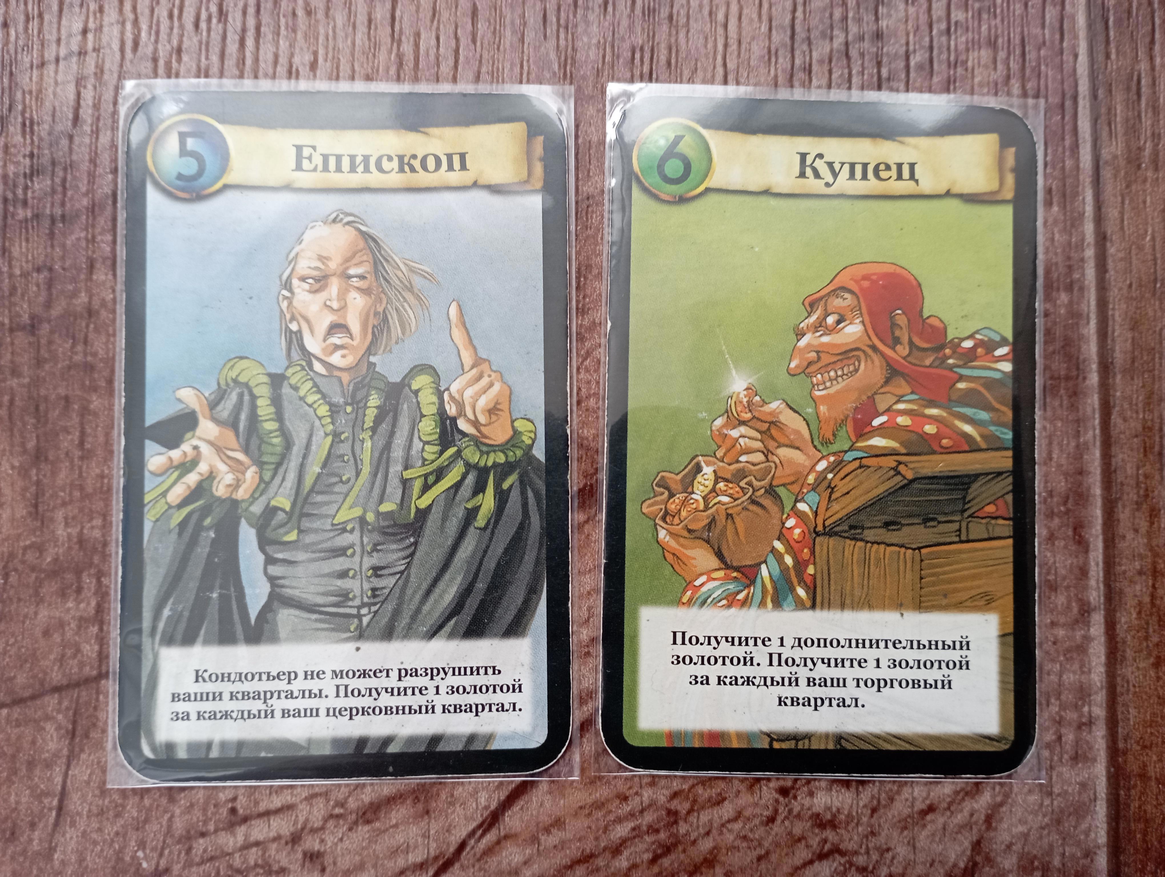Епископ выгоден ближе к концу игры — он сможет защитить ваш город от разрушения, но и в процессе игры весьма полезен, потому что приносит за церковные кварталы дополнительные монеты.