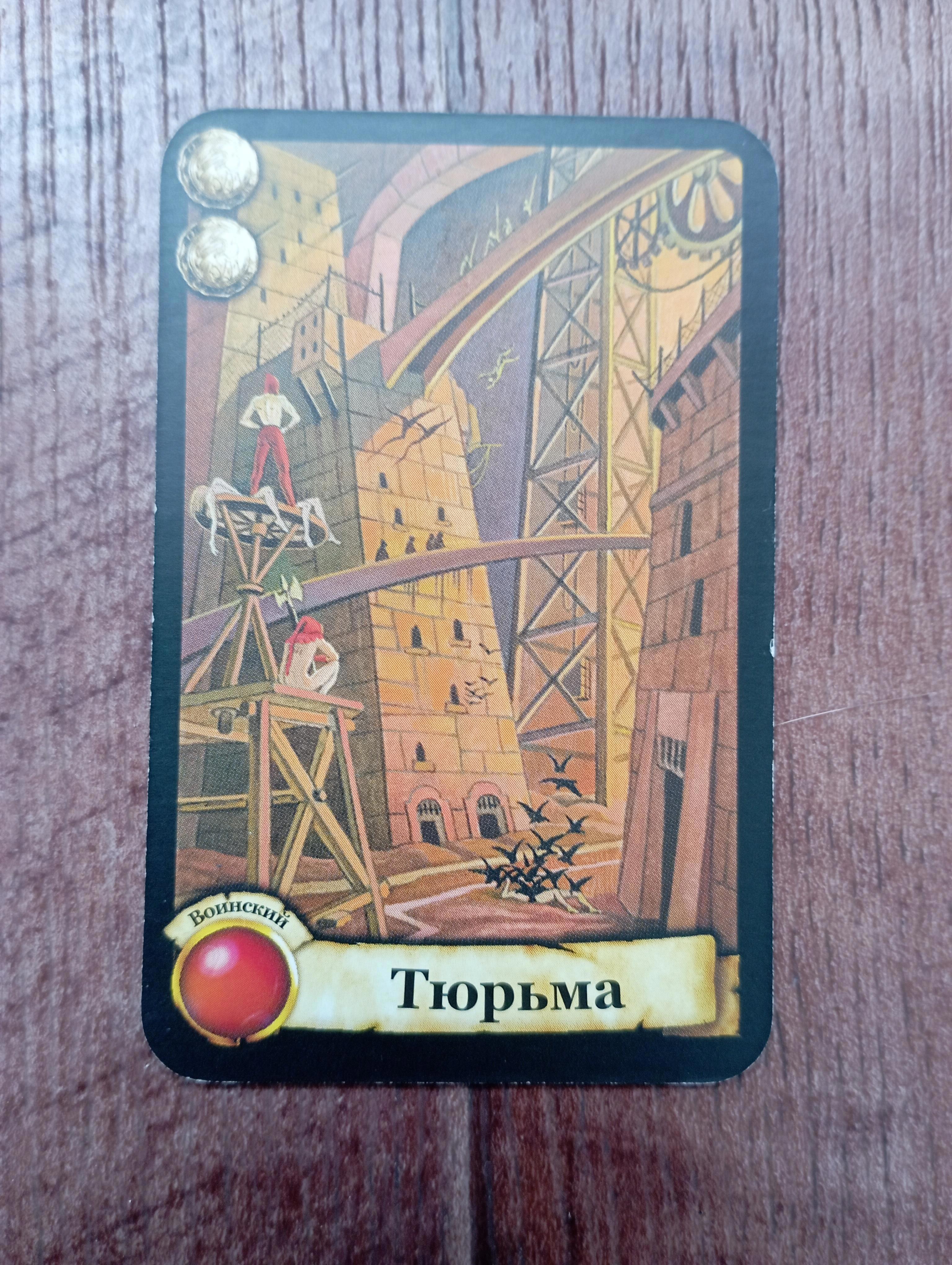 Кондотьер. Название этой карты кажется мне неудачным, ну да ладно. Кондотьер даёт бонусы за воинские кварталы, а ещё умеет разрушать постройки в чужих городах (жаль, что на это тратится золото!). Тот, кто играет кондотьером, обычно вызывает больше всего возмущённых воплей и ненависти от других игроков, даже больше, чем ассасин