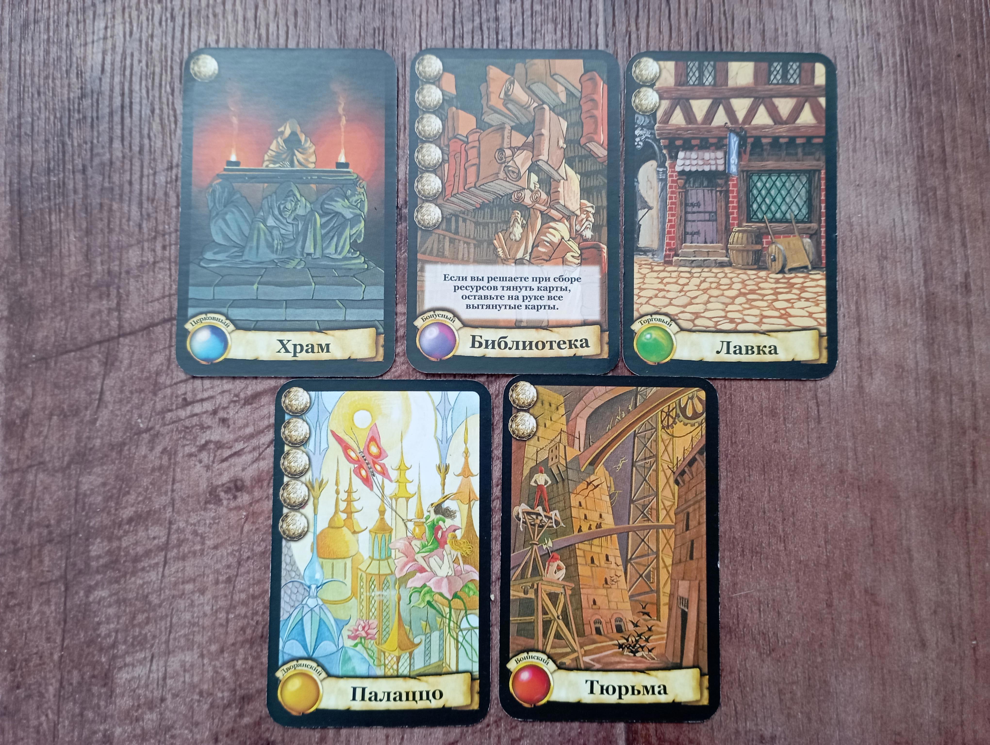 Чародей — полезен, чтобы быстро поменять свои кварталы, если у вас они не очень. Особенно здорово, что можно забрать все карты с руки у другого игрока, а не надеяться на милость случая и удачные карты из колоды.