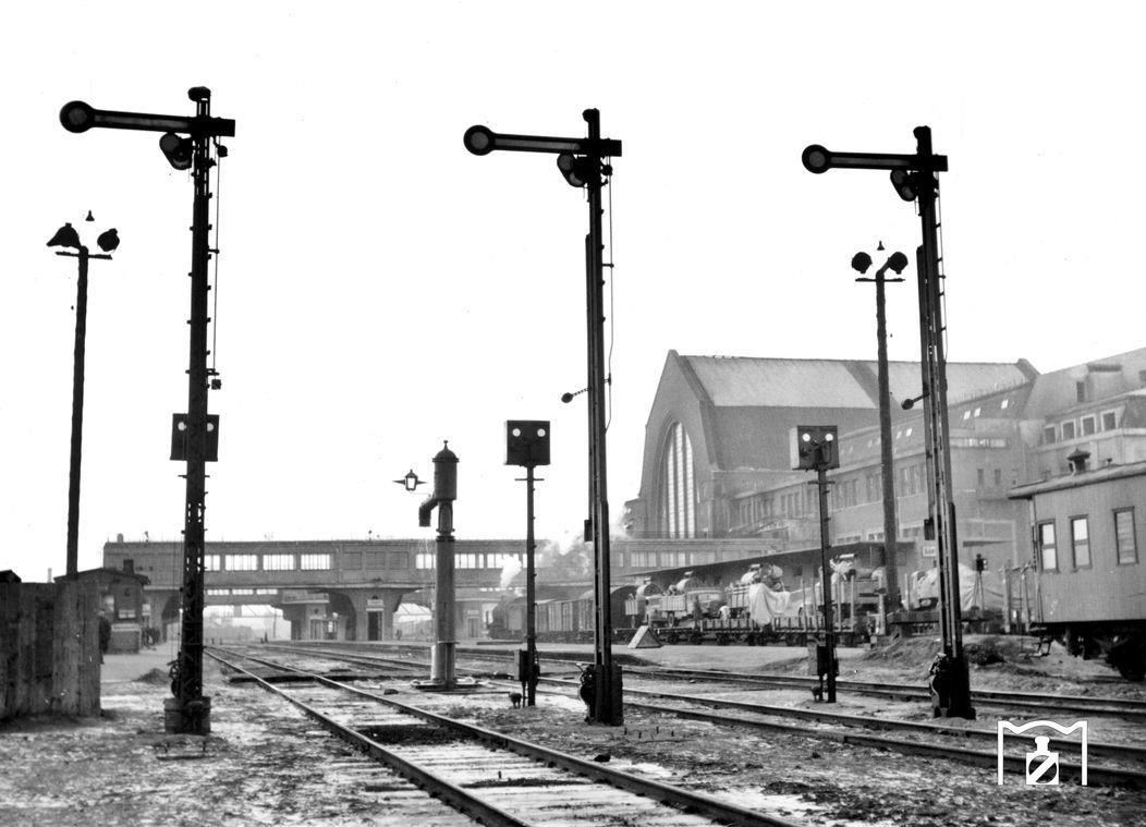 Киев, главный вокзал. Вид на самый важный железнодорожный перекресток украинской столицы Киева во время немецкой оккупации. Станция Киев уже является скоростной линией с шириной 1435 мм и оснащен немецкими сигнальными устройствами. Военный поезда P 8 проходит на запад через железнодорожную станцию. (1942) Foto: RVM (Steiner) (1942) Foto: RVM (Steiner)