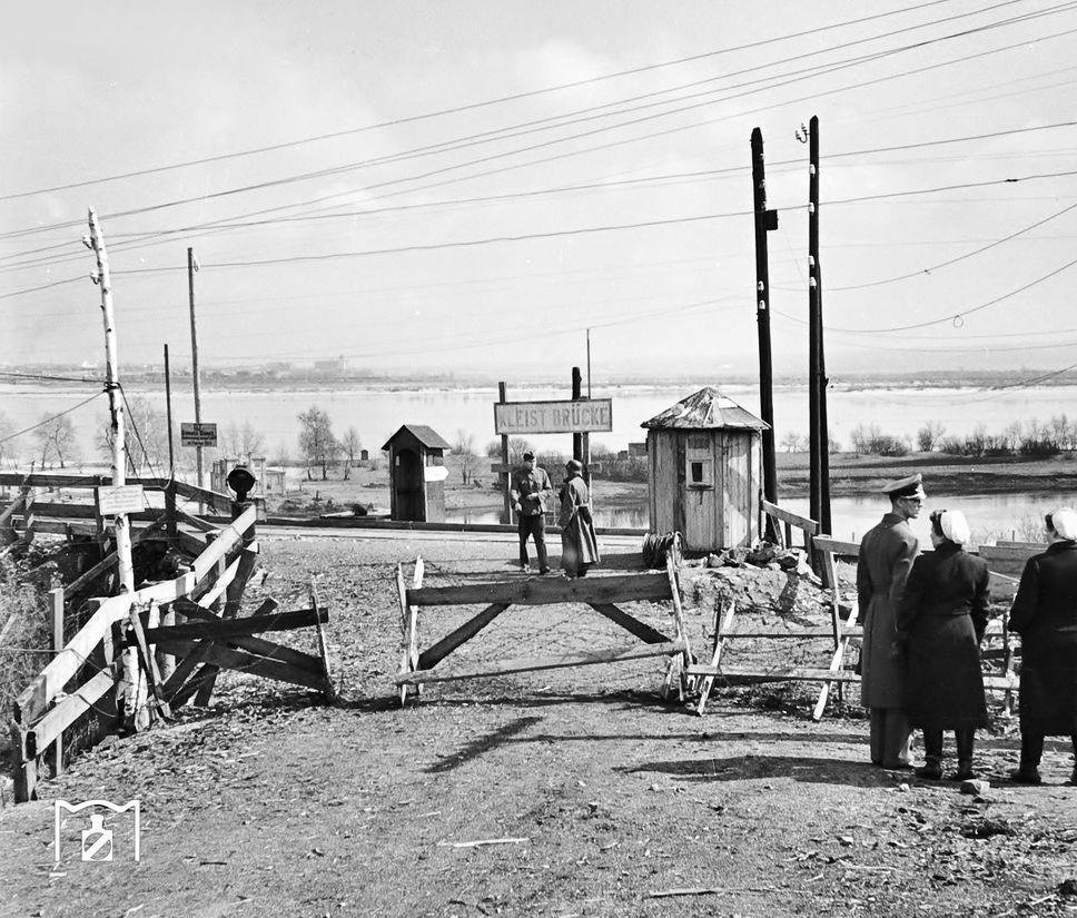 Блокпост на совмещенном автомобильно-железнодорожном мосту («Мост Клейста») через Самару в Днепропетровске. Название призвано помнить генерал-полковника фон Клейста, который после тяжелого боя 25 августа 1941 года смог взять Днепропетровск.(01.1943) Фото: Prof. Wolfgang Reisewitz