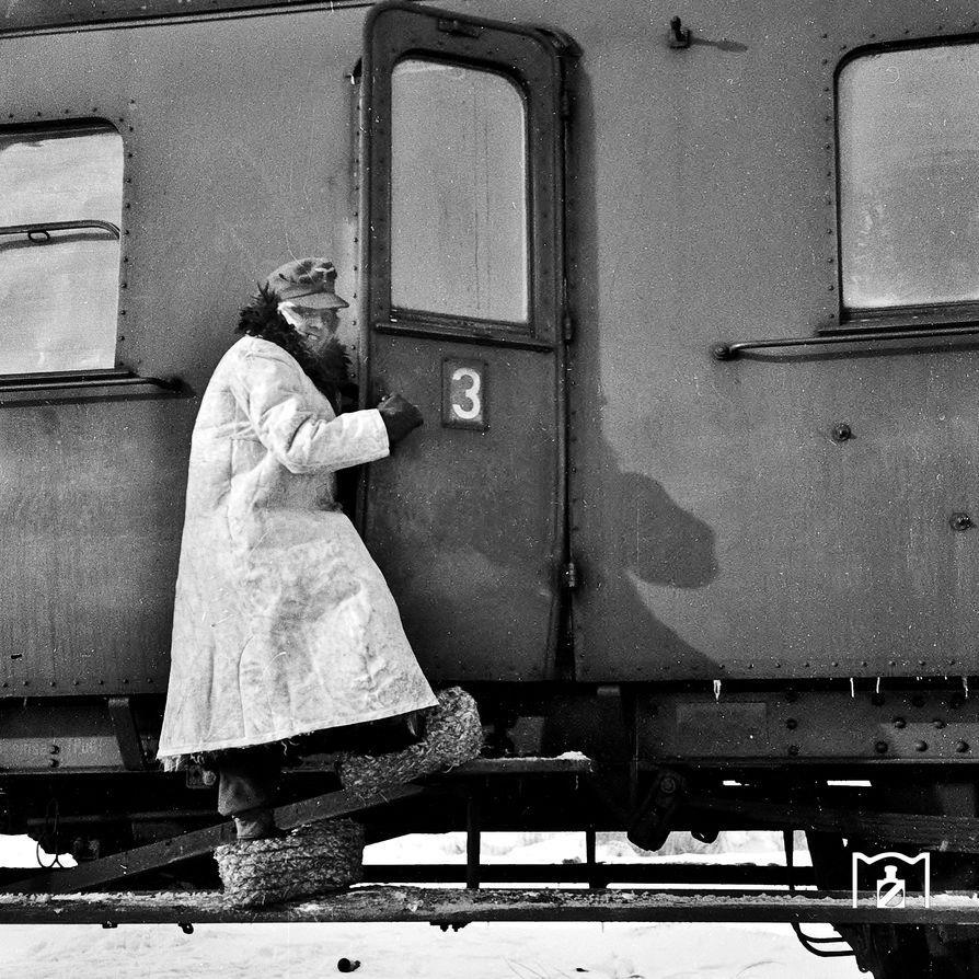 Вагонный мастер в Днепропетровске. В январе 1943 года была температура до -35 градусов. При этих температурах немецкой зимней одежды, очевидно, было недостаточно во второй зиме в российской войне, так что пришлось получить доступ к хорошим домашним средствам для обуви. (01.1943) Фото: Prof. Wolfgang Reisewitz