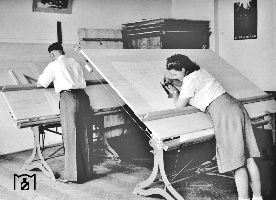 Украинское фото с коллегой в офисе мостостроительного бюро в Днепропетровске, который был частью GVD (общее транспортное управление), базирующееся в Варшаве. (1943) Foto: RVM (Hollnagel)