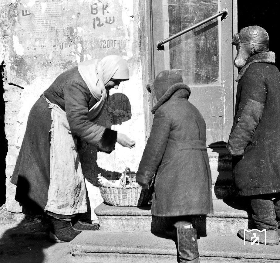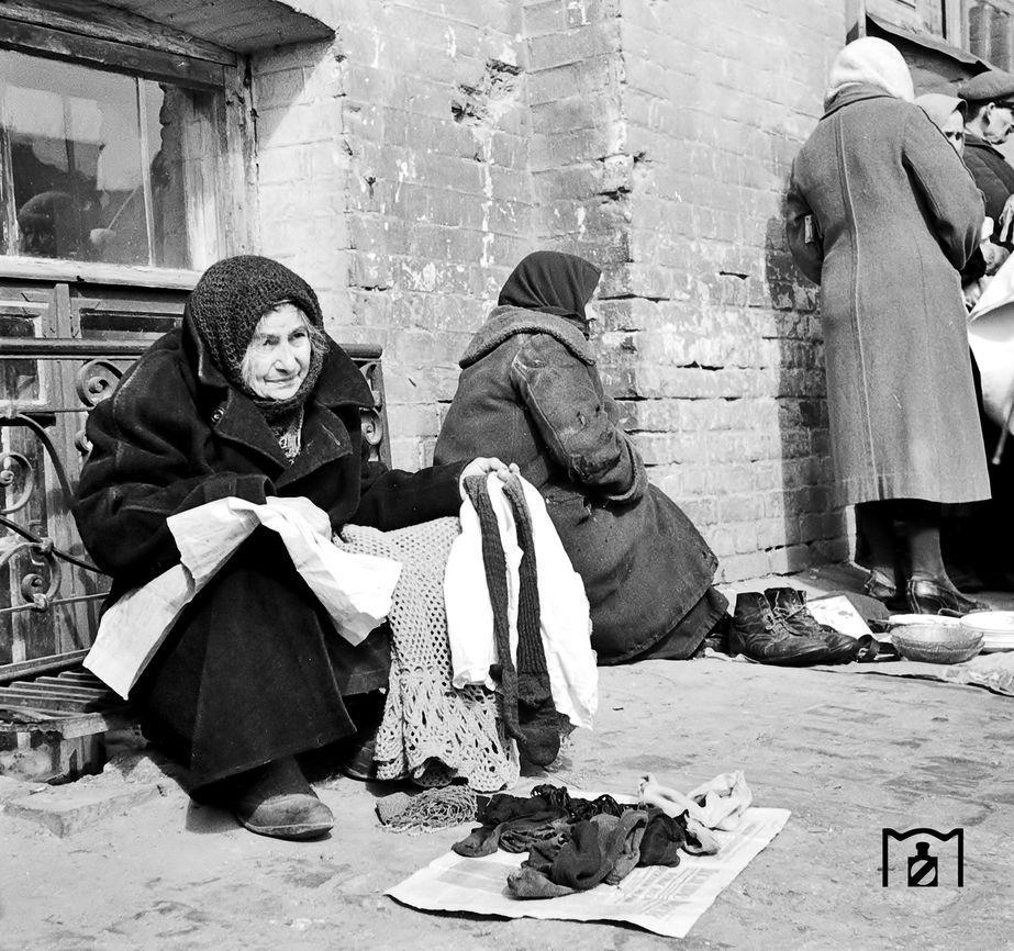 Во время Второй мировой войны Харьков подвергся тяжелым боям и понес много потерь. Город был очень важным стратегическим объектом не только из-за его центрального транспортного положения, но и из-за наличия там военной промышленности. Например, там были изобретены, разработаны и производились танки Т-34. С октября 1941 года, до мая 1942 года, четвертый по величине город Советского Союза был завоеван немецкими войсками, в мае 1942 года была, но провалилась попытка освобождения. Освободить удалось только в феврале 1943 года, но уже в марте 1943 года город вернулся к немцам после тяжелых сражений. Большая часть города были разрушены боями. Только после битвы при Курске город, наконец, был освобожден Красной Армией 23 августа 1943 года (источник: Википедия). Скудное предложение на рынке свидетельствует о страданиях населения после повторного захвата немцами весной 1943 года.Foto: Walter Hollnagel