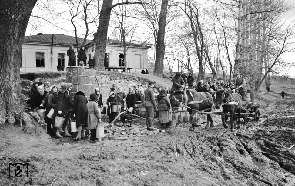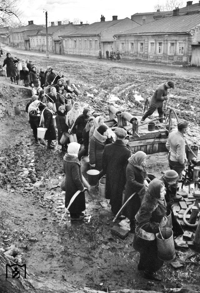 Вальтер Холлнагель не оставил без внимания страдания гражданского населения. Люди надеются на чистую воду из общественного фонтана. (04.1943) Foto: Walter Hollnagel