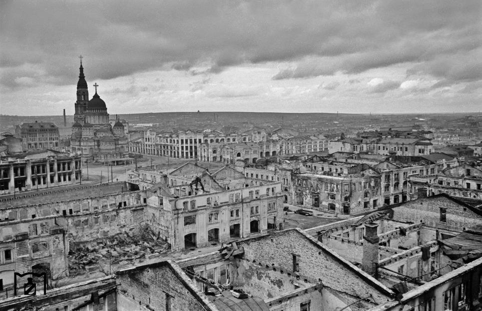 Еще в 20 -м веке Украина часто была полем битвы. В частности, крупные города, которые теперь снова являются целью российской артиллерии. Самый большой город Украины, Киев, является предметом ожесточенных боев с августа 1941 года. 19 сентября 1941 года немецкому Вермахту удалось захватить город, в котором проживало около 900 000 жителей, который, однако, был окончательно поврежден и, прежде всего, заминирован отступающими частями Красной Армии. Спустя несколько дней после ухода Красной Армии, радиоуправляемая мина вызвала крупный пожар на складе боеприпасов, который быстро объял центр города и не мог быть быстро потушен. Только 29 сентября немецкие войска потушили пламя. (1942) Фото: Prof. Wolfgang Reisewitz