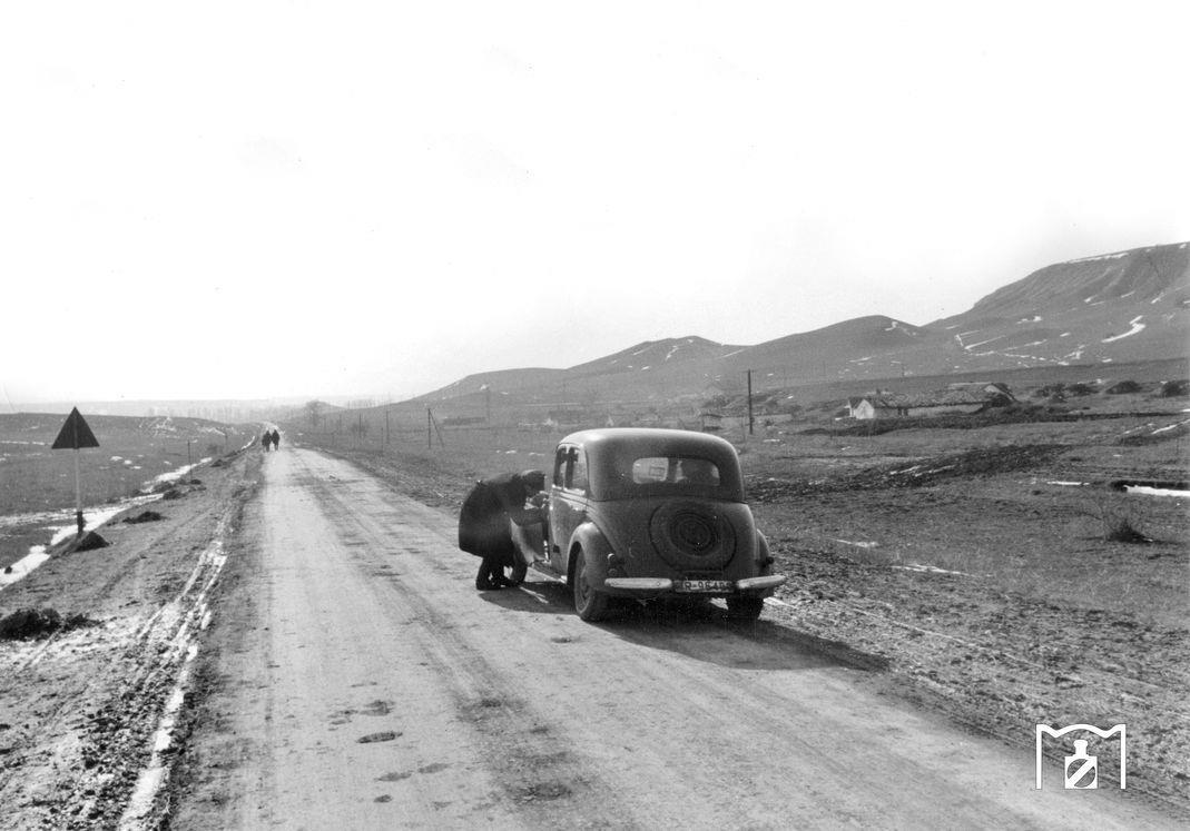 Поломка служебного автомобиля "R 95400" гамбургского фотографа Вальтера Холлнагеля по дороге в Симферополь в Крыму. (08.1943) Foto: RVM (Hollnagel)