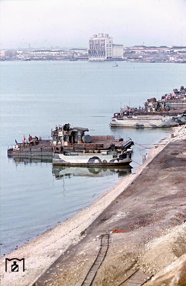 Десантный корабль Вермахта покачивается на берегу Днепровского водохранилища к западу от украинского города Днепропетровска. Сзади вы видите огромное зернохранилище – ведь Украина когда-то была зернохранилищем России.(08.1943) Foto: Walter Hollnagel