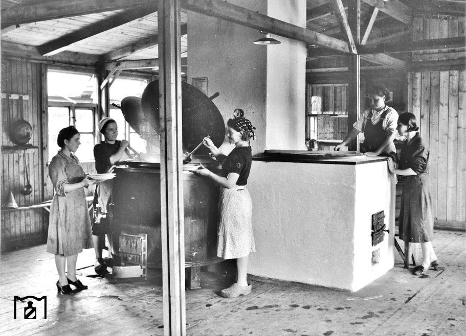 Заботились о физическом благополучии железнодорожников местные женщины. Конечно, фотограф также заставил кухонных работниц занять привлекательную позицию в этот момент.(1943) Foto: Walter Hollnagel