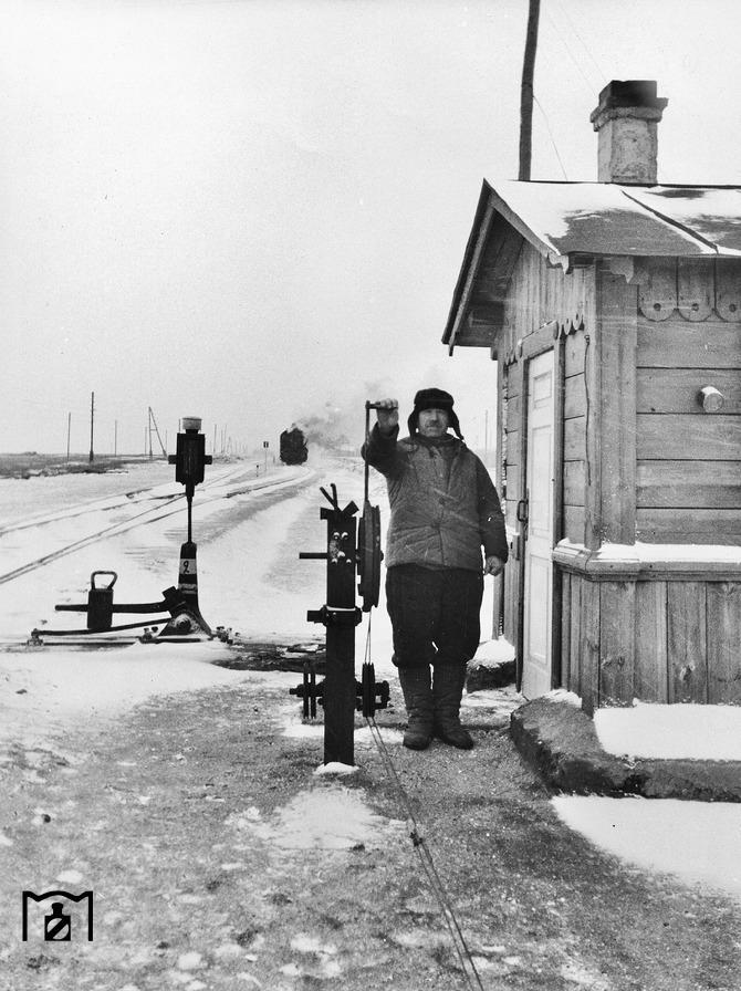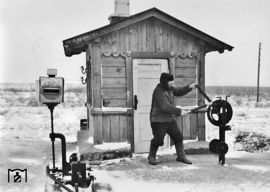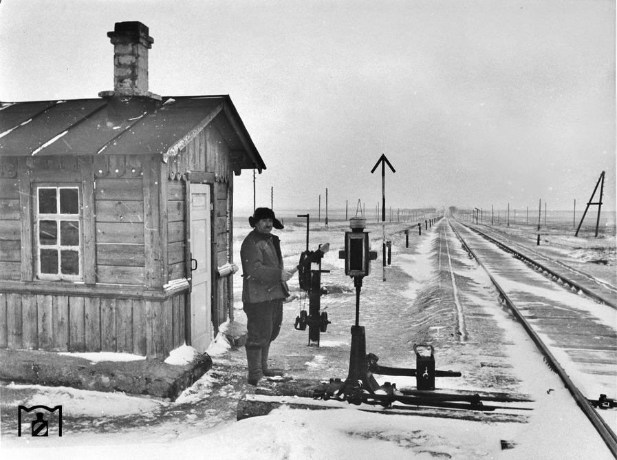 Единственное, что позволяло согреться на холоде, — это работа с переключателем или сигнальным рычагом. (1943) Foto: Walter Hollnagel