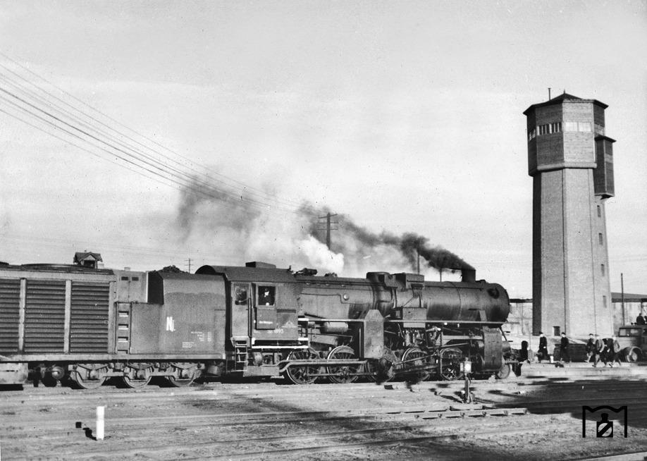 52 1893 г. в Николаевском депо. Аббревиатура Nj, нанесенная на тендер, доказывает, что он явно принадлежит этому депо, как и безошибочно узнаваемая водонапорная башня. Официально паровоз базировался здесь с 27 сентября 1943 года по 22 марта 1944 года. (09.1943) Foto: Walter Hollnagel