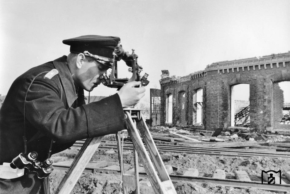 Геодезисты, разрушенное депо Полтава. (1943) Foto: Walter Hollnagel