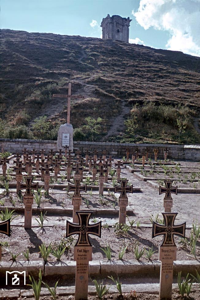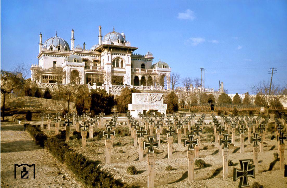 Военное кладбище перед тогдашней больницей в Феодосии со своим поразительным зданием, похожим на мечеть, дача Стамболи в Крыму. После отступления немецких войск эти кладбища были разрушены. (1943) Foto: Walter Hollnagel