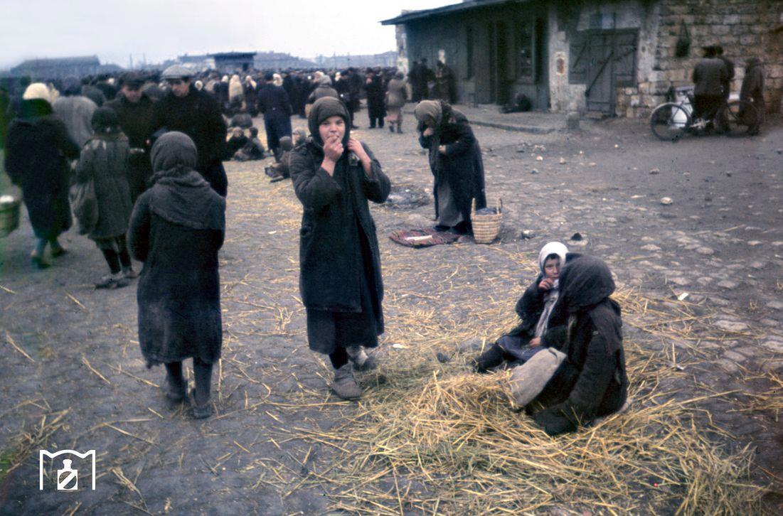Украина не впервые стала мишенью агрессора в 2022 году. Во время Второй мировой войны нынешняя Украина полностью находилась под немецкой и румынской оккупацией, которые принесли стране разрушения, страдания и смерть. Вальтер Холлнагель, фотограф, прикомандированный к RBD в Гамбурге, во время командировки остановился в Лубнах, маленьком городке на полпути по железной дороге Киев—Полтава. Здесь до июня 1943 года действовало Лубненское машинное отделение, которое было расформировано в результате изменения границ RVD. Вальтер Холлнагель любил попутно документировать страну и людей. Поэтому он воспользовался новой цветной пленкой Agfa и сделал эту фотографию печально известного грязевого периода, начавшегося уже в конце лета 1943 года. Грунтовые дороги и дороги превратились в настоящие грязевые пустыни. Таблички, прикрепленные слева, будут сняты немного позже, уже в октябре 1943 года Лубны были освобождены Красной Армией. (09.1943) Foto: Walter Hollnagel