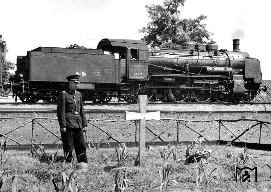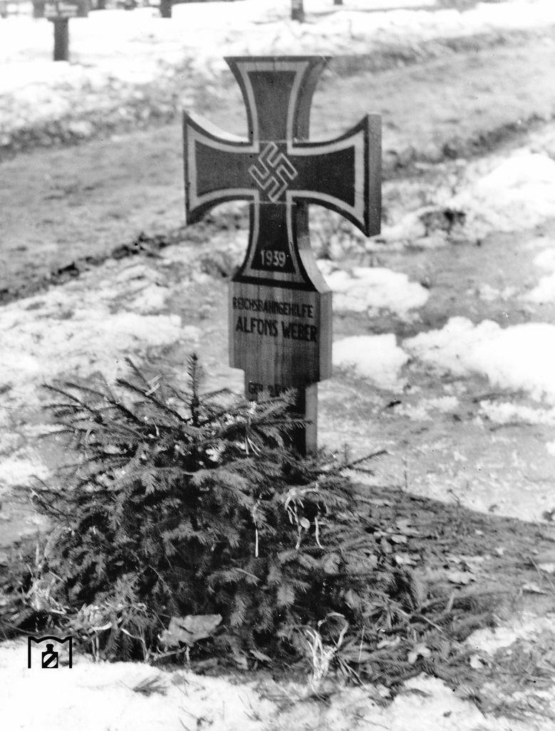 Служащий Рейхсбана Альфонс Вебер, очевидно, понял это еще в 1939 году, когда писал "фюреру, народу и Отечеству". Но это было только началом конца. Только за пять месяцев с ноября 1942 года по март 1943 года на Восточном фронте пало 850 000 немецких солдат. Число убитых железнодорожников также неуклонно росло, в основном из-за непрекращающихся партизанских вылазок. Первоначально на могилах ставились каменные кресты, но по мере развития войны они становились все проще и проще, и в конце концов они состояли только из простых березовых крестов. (1943)Foto: RVM (Korte)