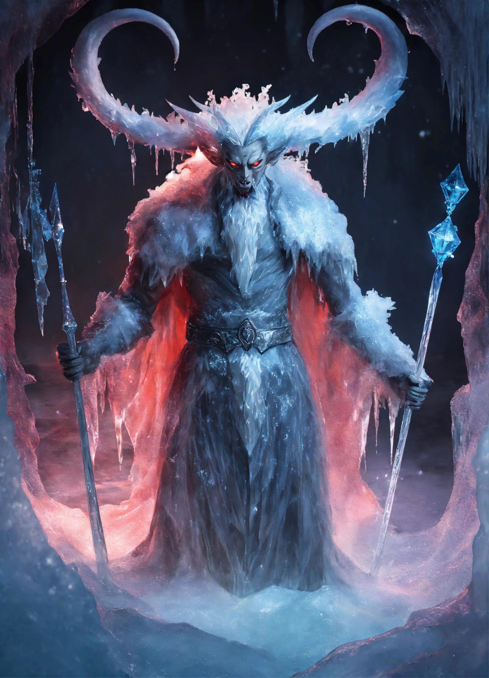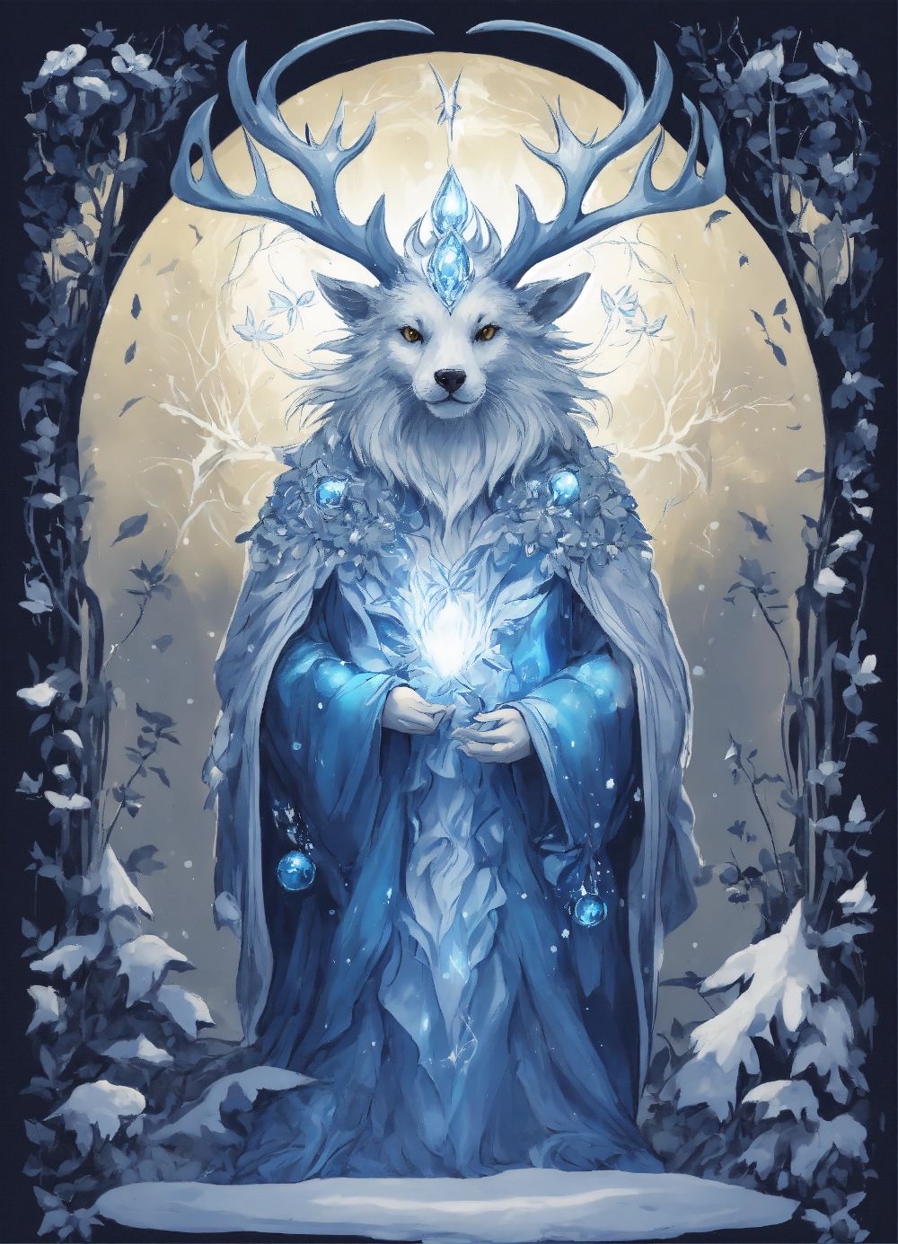 По-прежнему большие проблемы со славянскими мифологическими персонажами. Объяснить нейросети, кто такой Велес, не получилось. Мне нарисовали кого-то, отдаленно напоминающего Цернунна. Зиму, кстати, не заказывала, это выбор нейросети :)