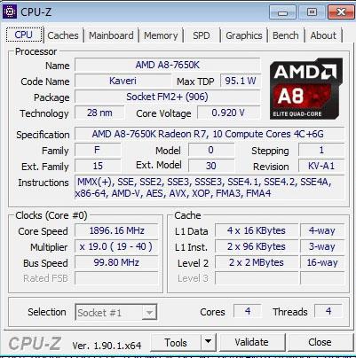 С процессорами AMD под FM2+ все не так. Они куда более изощренные и, как ни странно, производительные. A8-7650K – это не процессор, а APU, гибридное устройство. У него десять ядер – четыре x86-64 и шесть графических ядер (они занимают 47 процентов площади кристалла), причем с общим адресным пространством в оперативке – так называемая гетерогенная архитектура. (У A10 восемь графических ядер, но у меня A8, так что писать буду о нем). Если задействовать все десять ядер, то любой Интел вплоть до i7 в хорошо распараллеливаемых задачах будет жалобно смотреть на A8 и постанывать «ой, чего ж я так не могу»? В общем, технология отменная. И просто крутая.