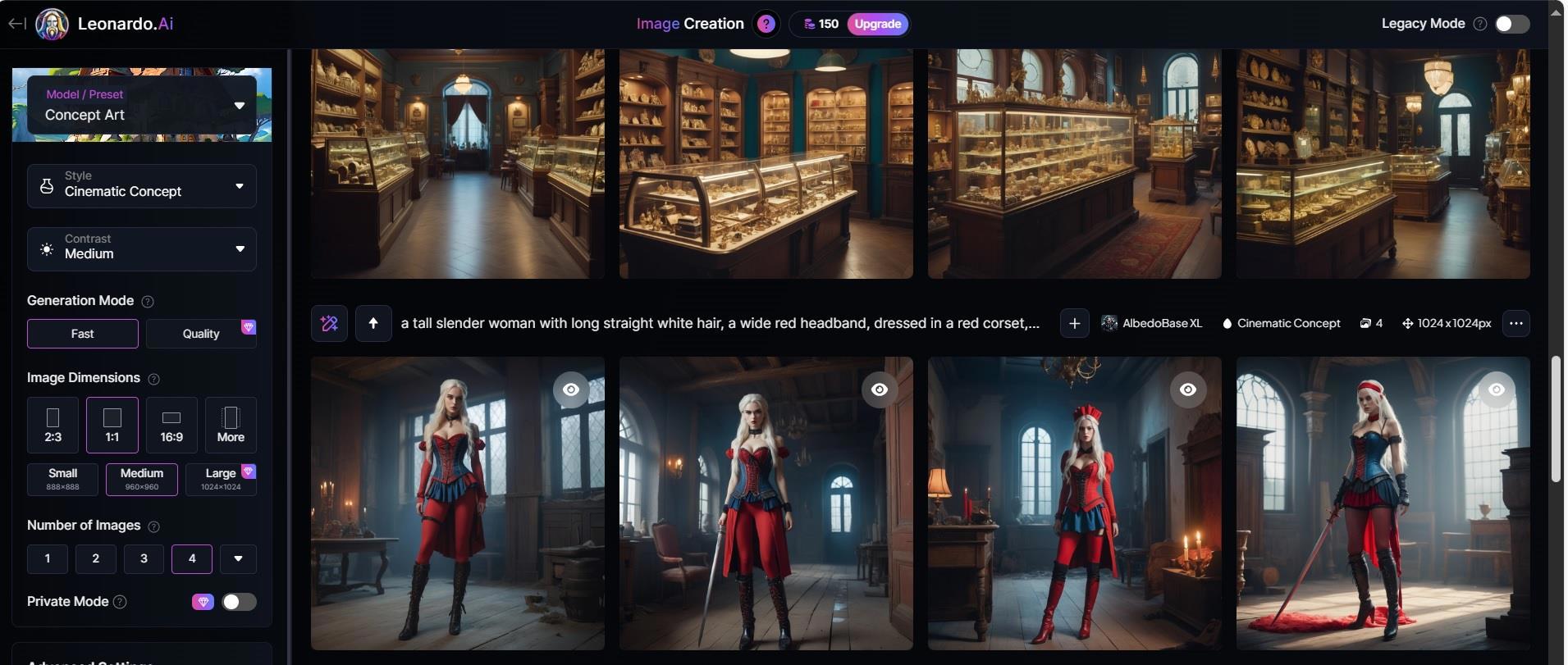 В Leonardo можно создавать вполне реалистичные визуалы — портреты героев, локации, генерить картинки для вдохновения и для обложек. Промт лучше писать на английском языке.