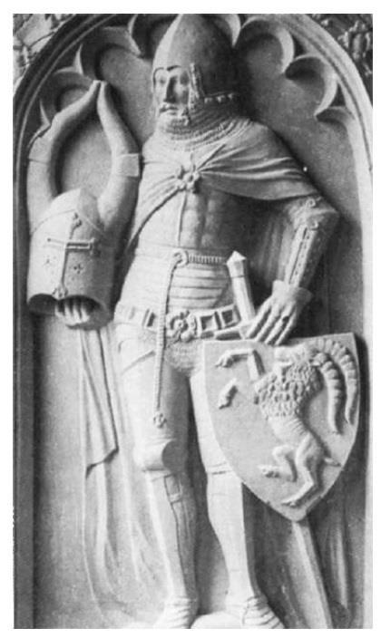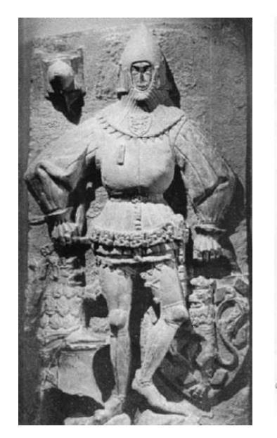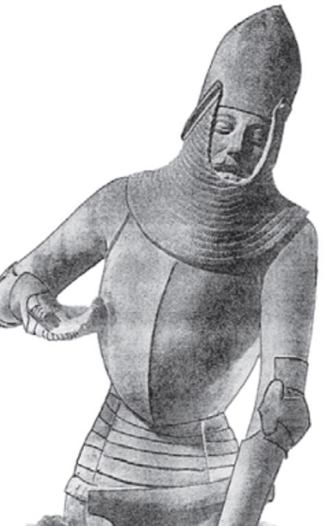 Небольшое отступление. В литературе, когда речь заходит об оборонительном вооружении второй половины XIV в., в связи с присутствием весьма необычного для того времени "мускульного панциря", аналогичного древнегреческим тораксам, часто упоминается рельефное изображение Буркхарда фон Штейнберга.