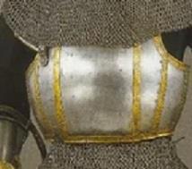 Предохранительное ребро появляется примерно в 1380 - е годы и было популярным до середины следующего столетия. Его назначение вполне очевидно: ребро должно препятствовать поражению горла воина соскользнувшим с выпуклой поверхности нагрудника копейным острием.