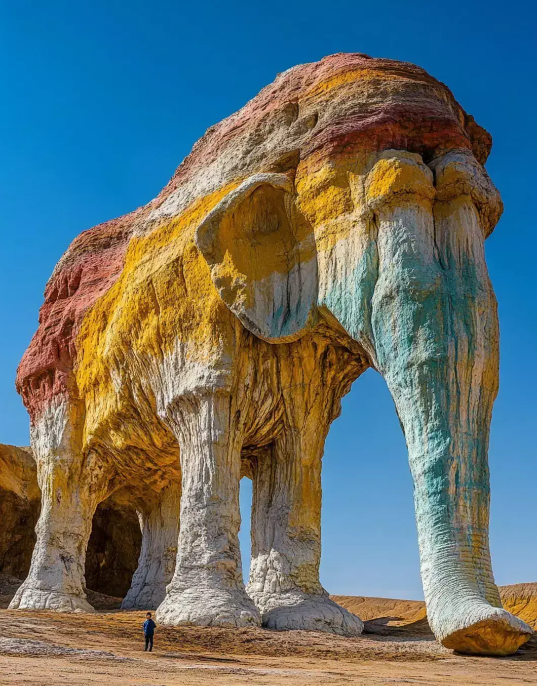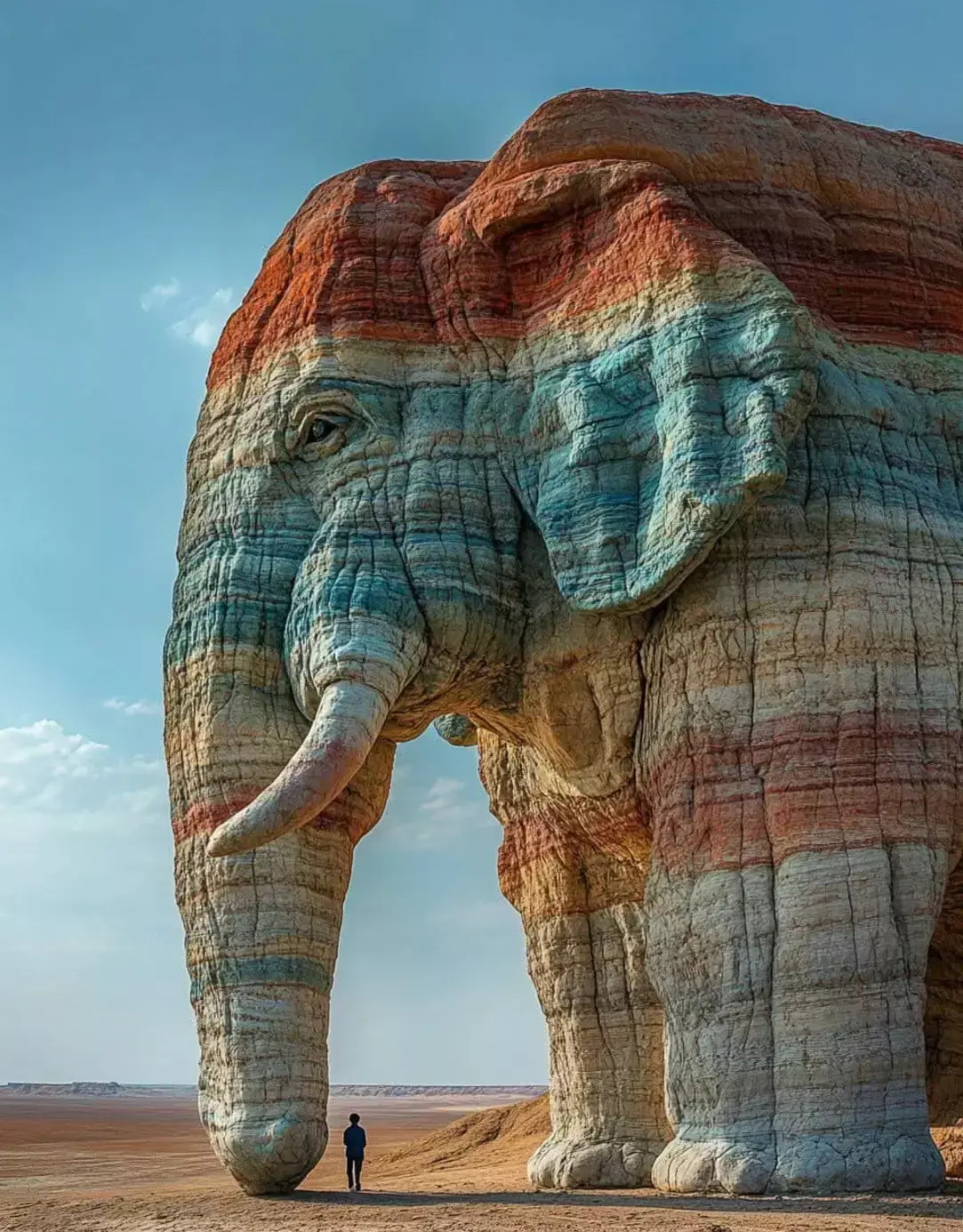 При приливе кажется, будто слон пьет воду, пустив длинный хобот в морскую воду, а при отливе обнаруживается слон в полном образе.
